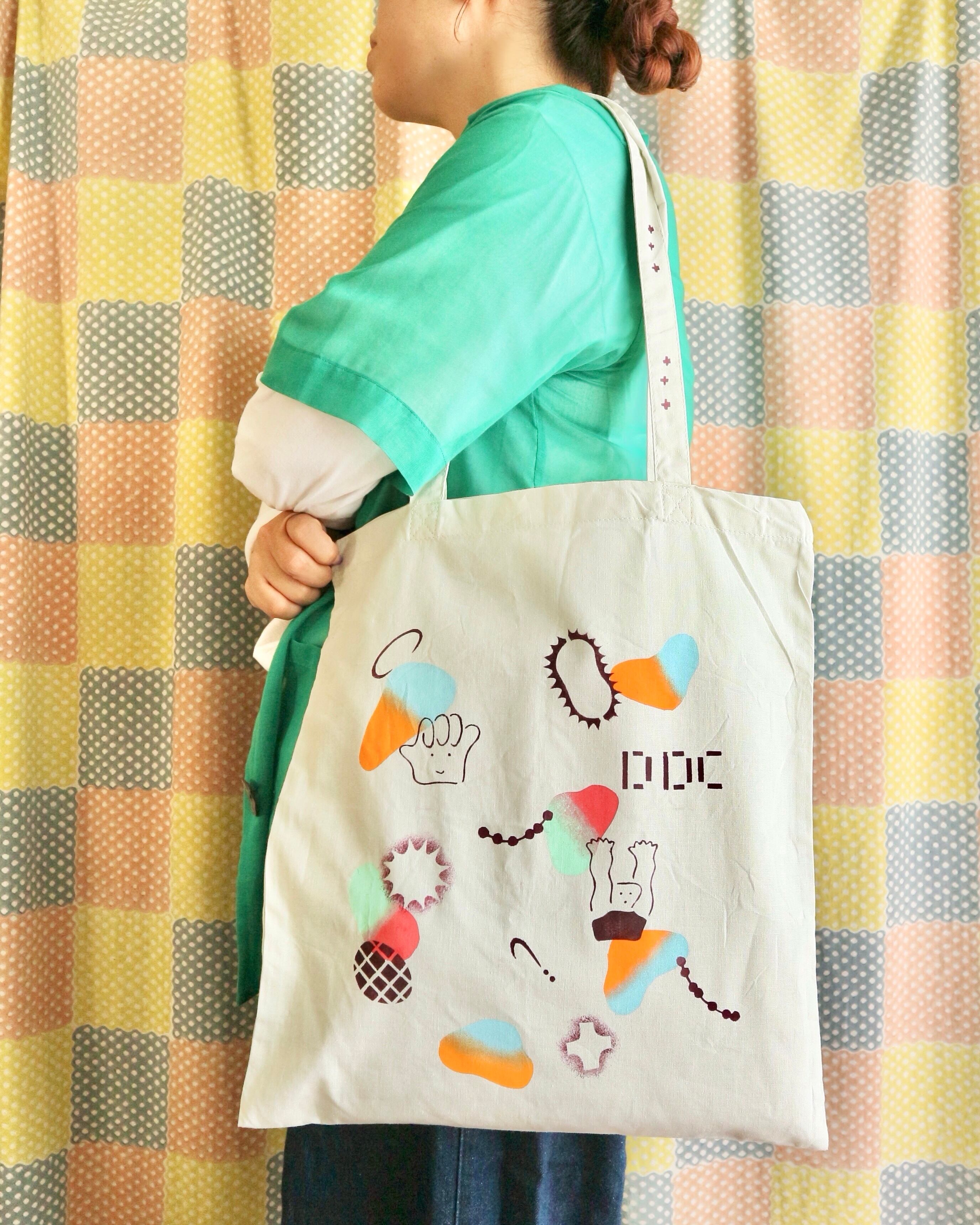 ステンシルプリントのトートバッグ。