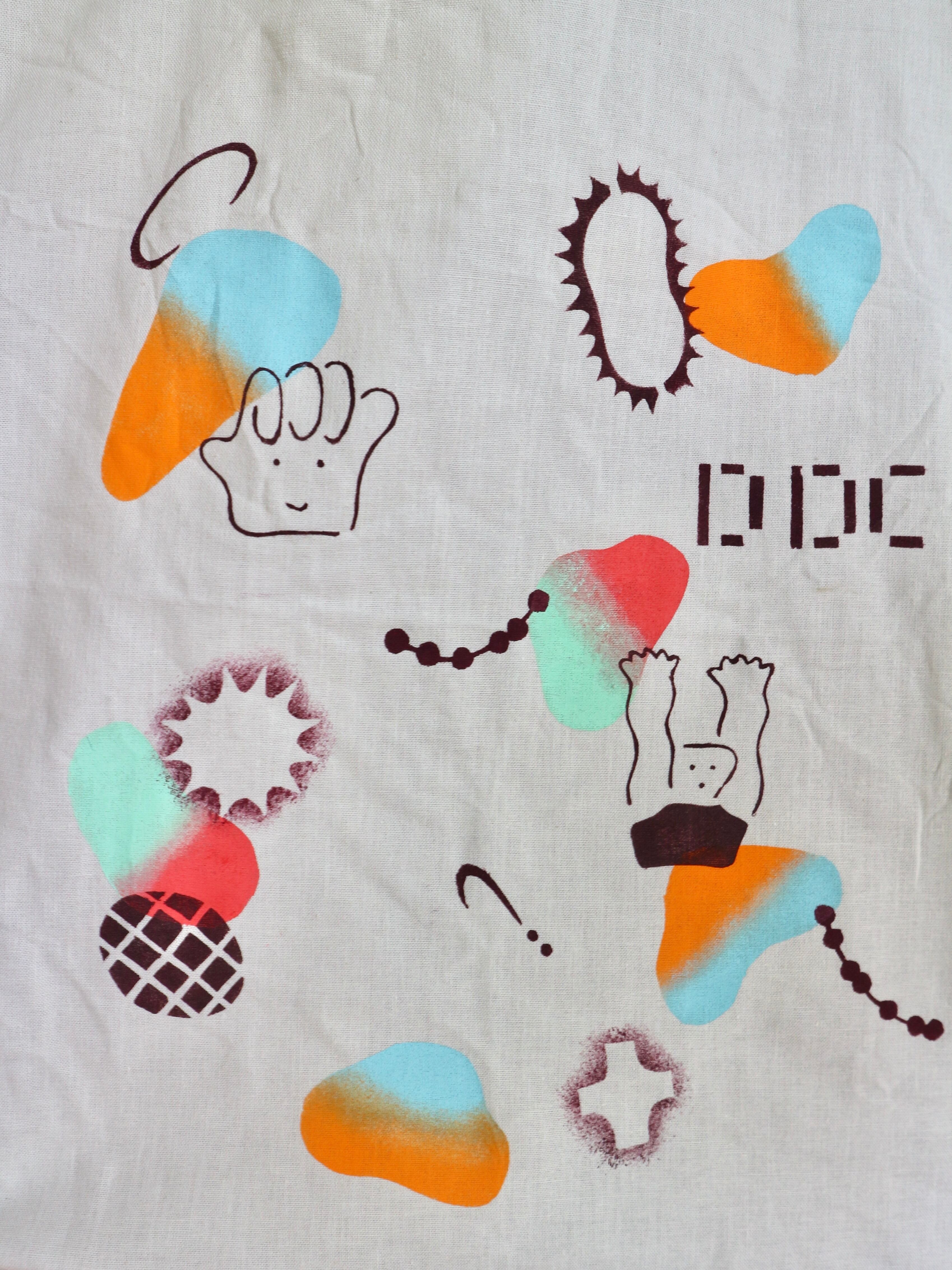 架空のダンスクラブ、"Daydream Dance Club"のオフィシャルグッズ、をイメージし、布用インク等でプリントしています。