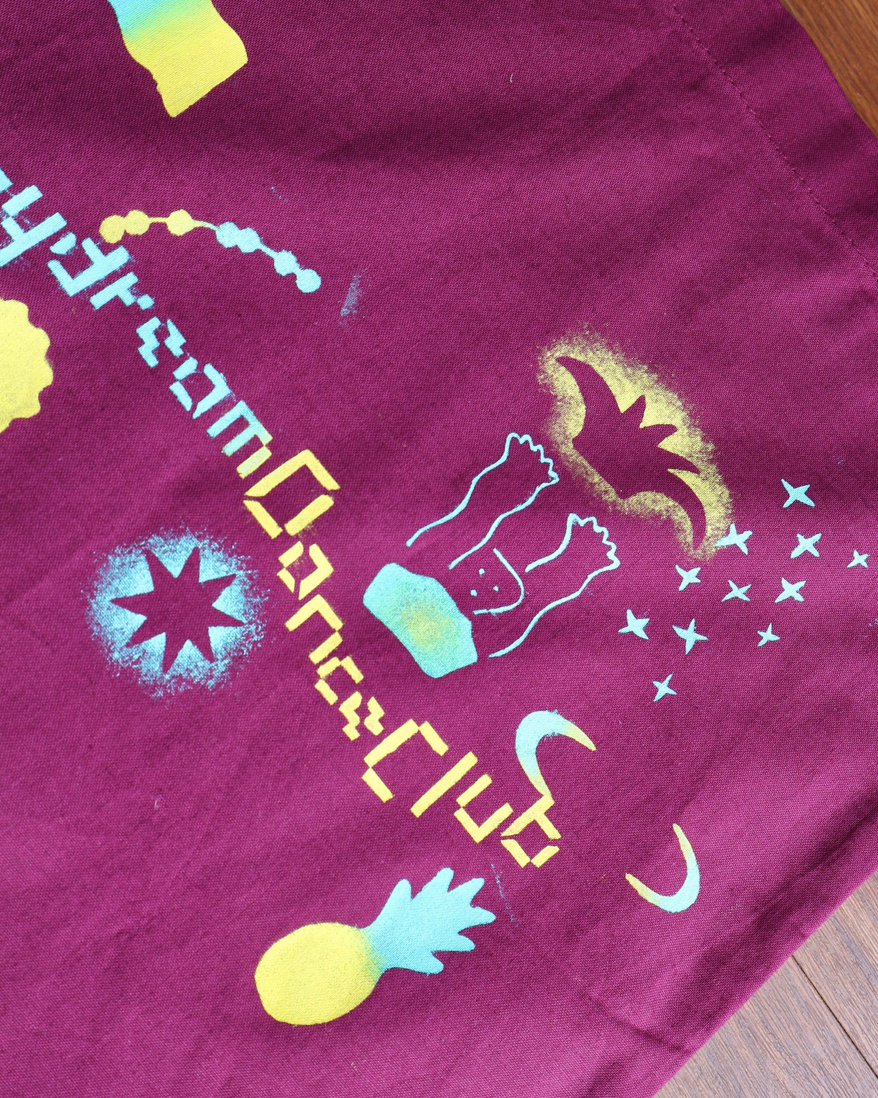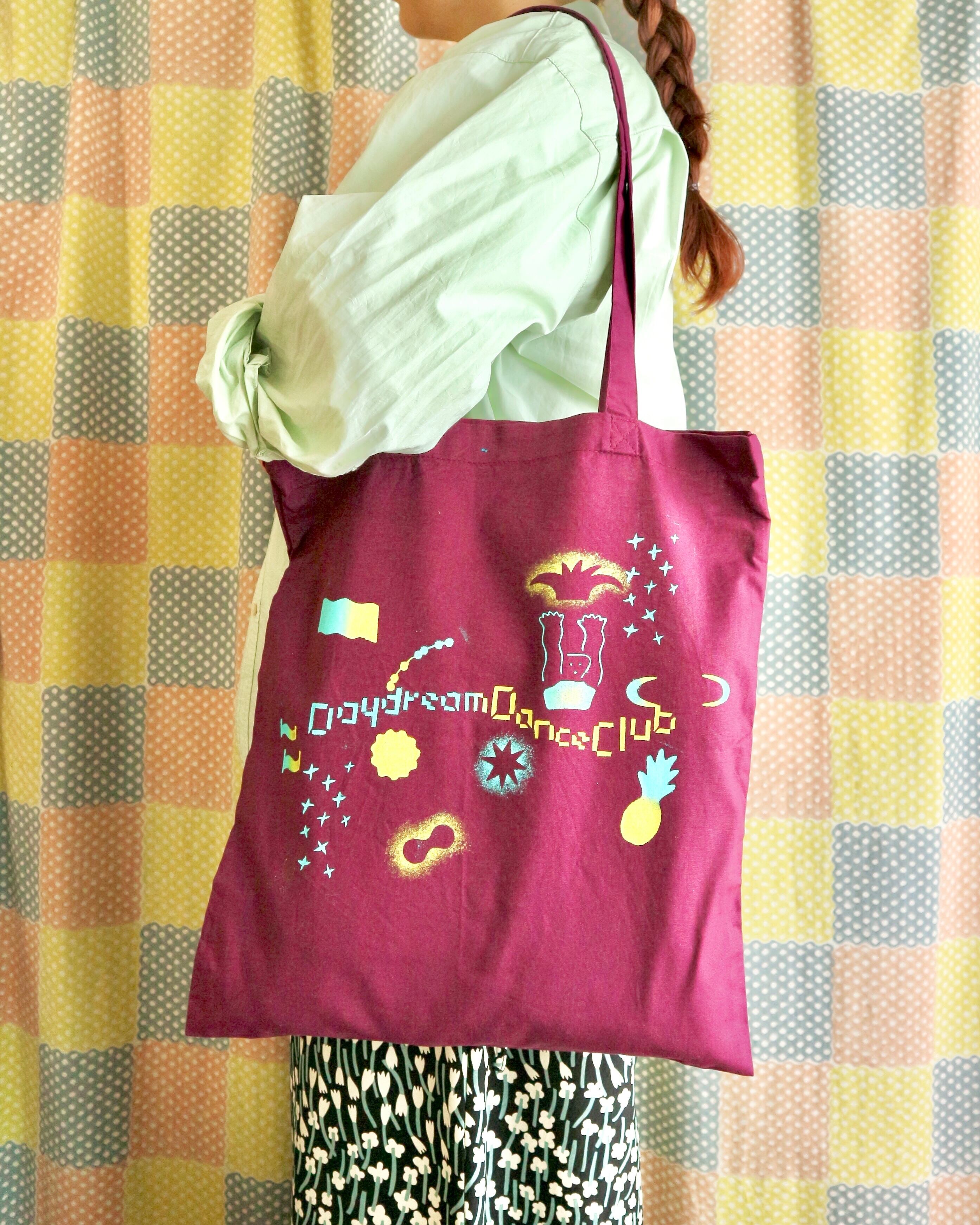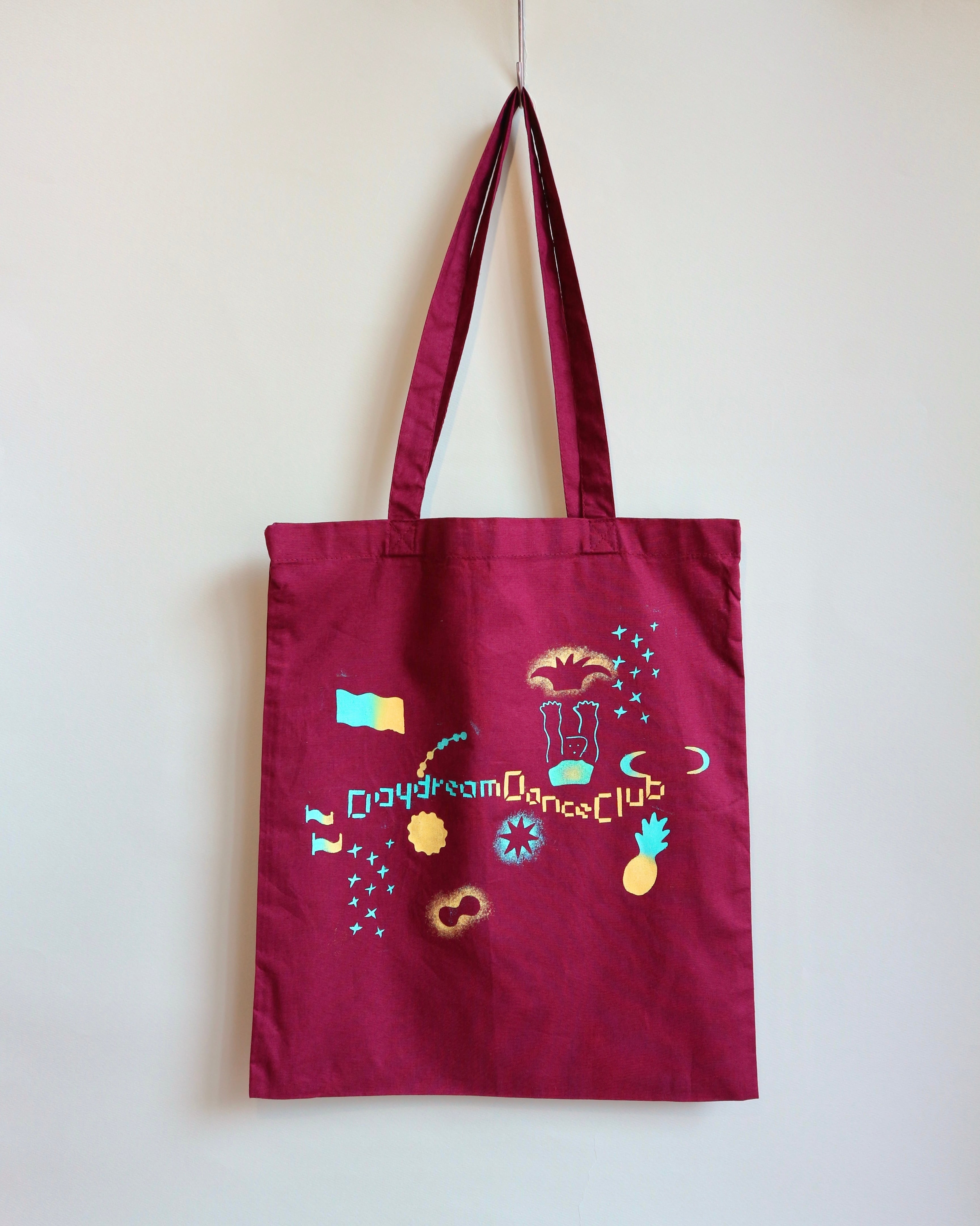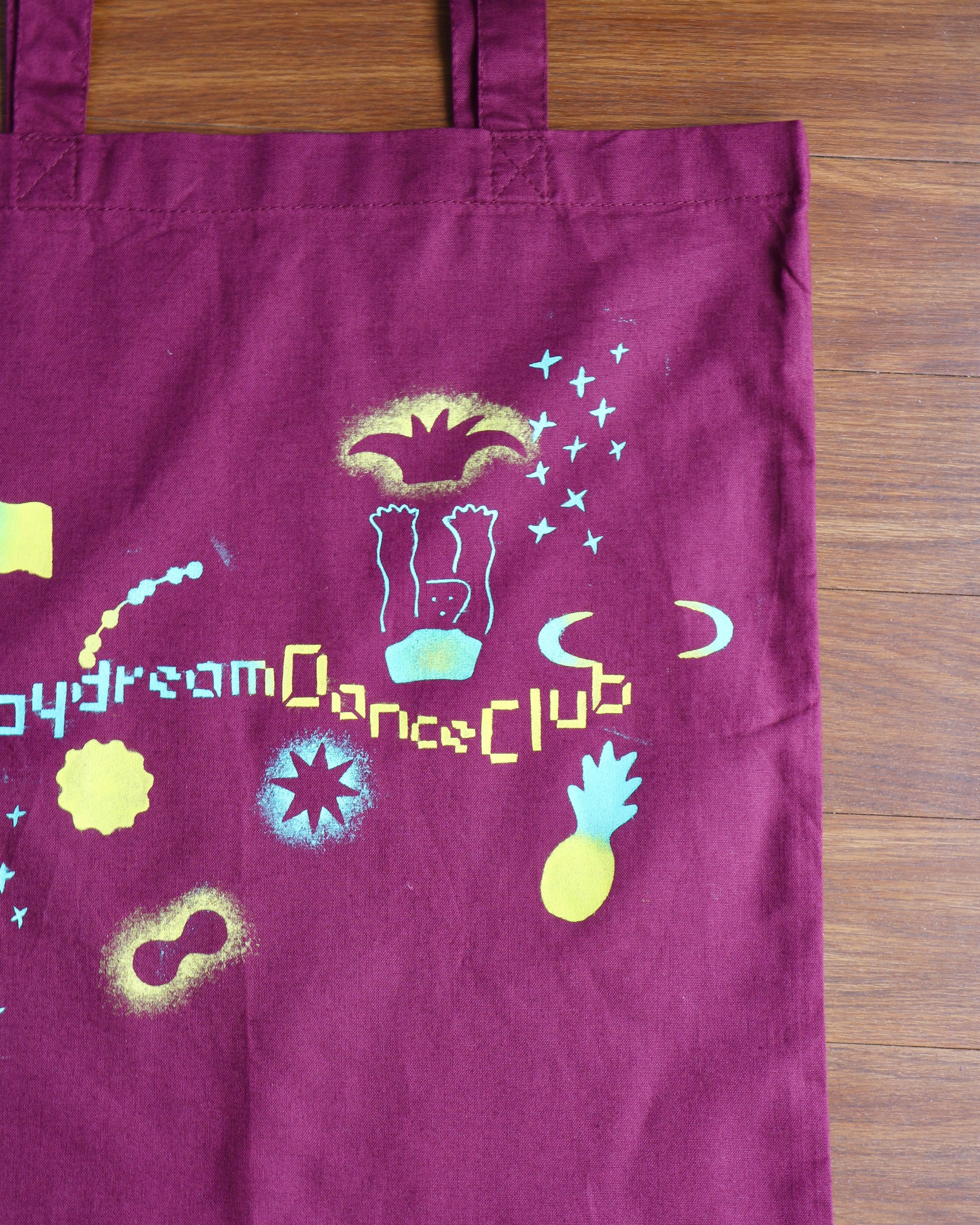 架空のダンスクラブ、"Daydream Dance Club"のオフィシャルグッズ、をイメージし、布用インク等でプリントしています。