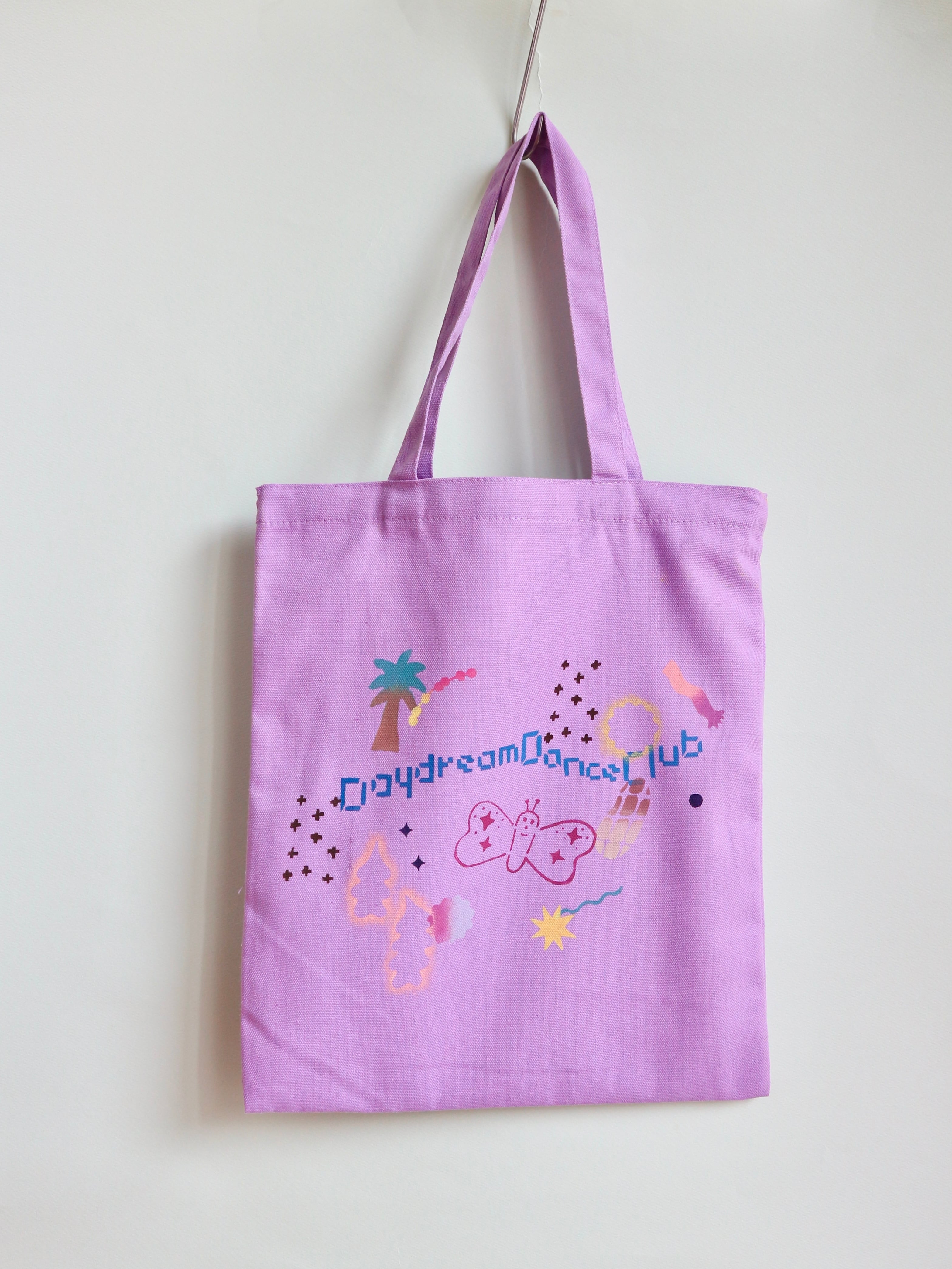 "Daydream Dance Club" Stencil Print Tote Bag - Purple