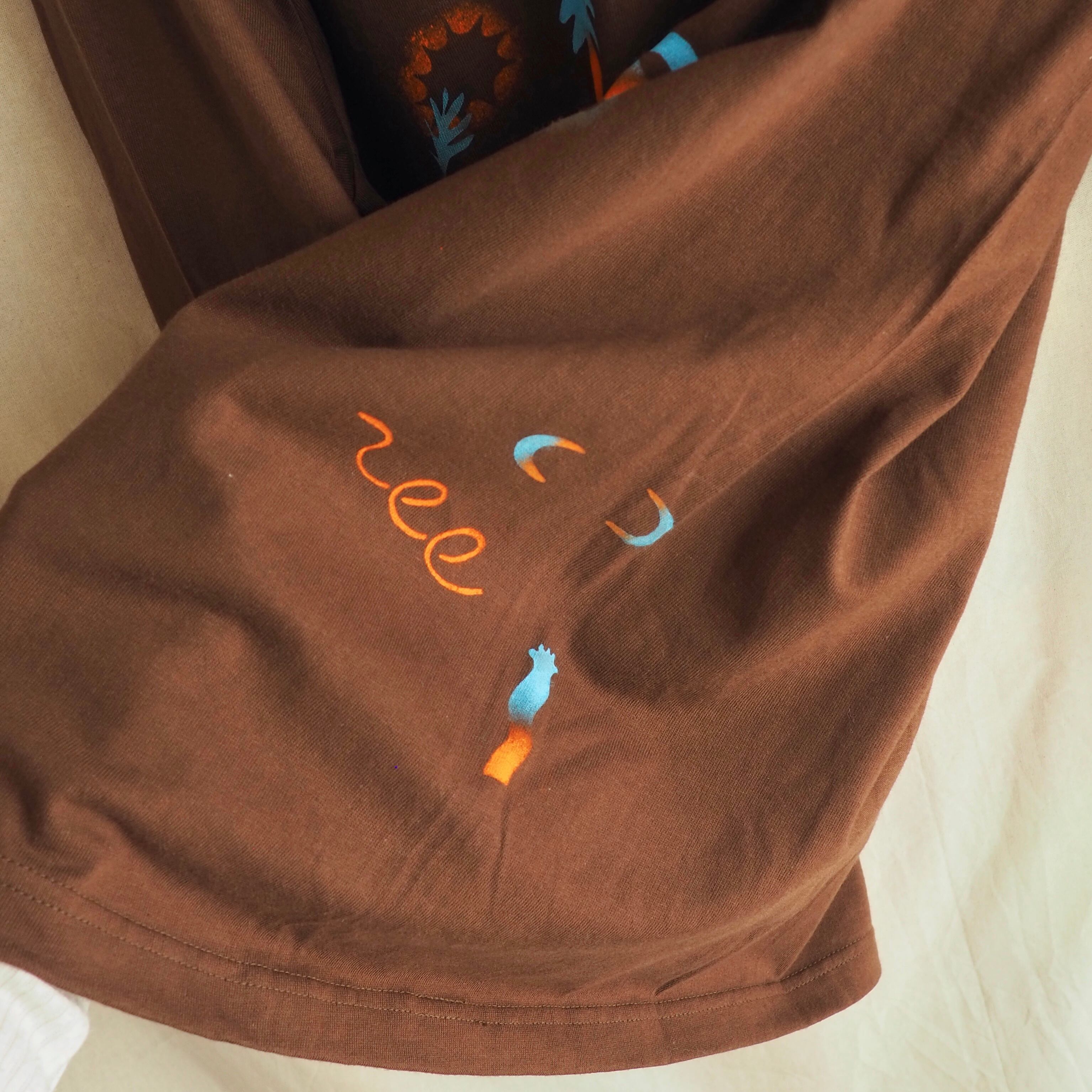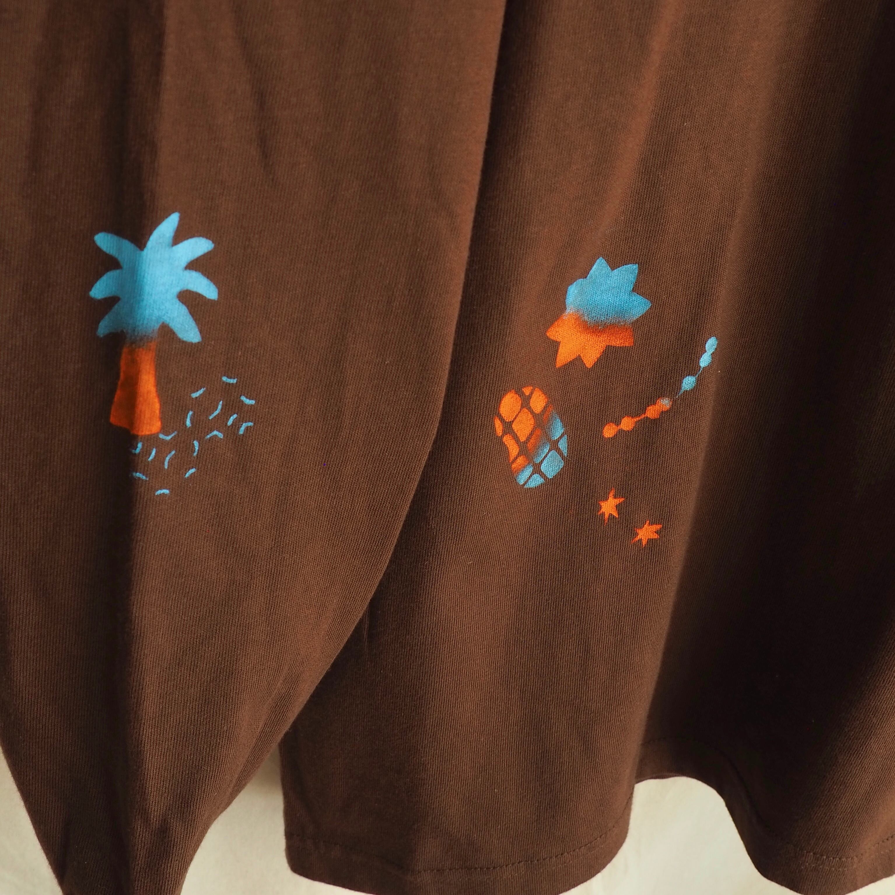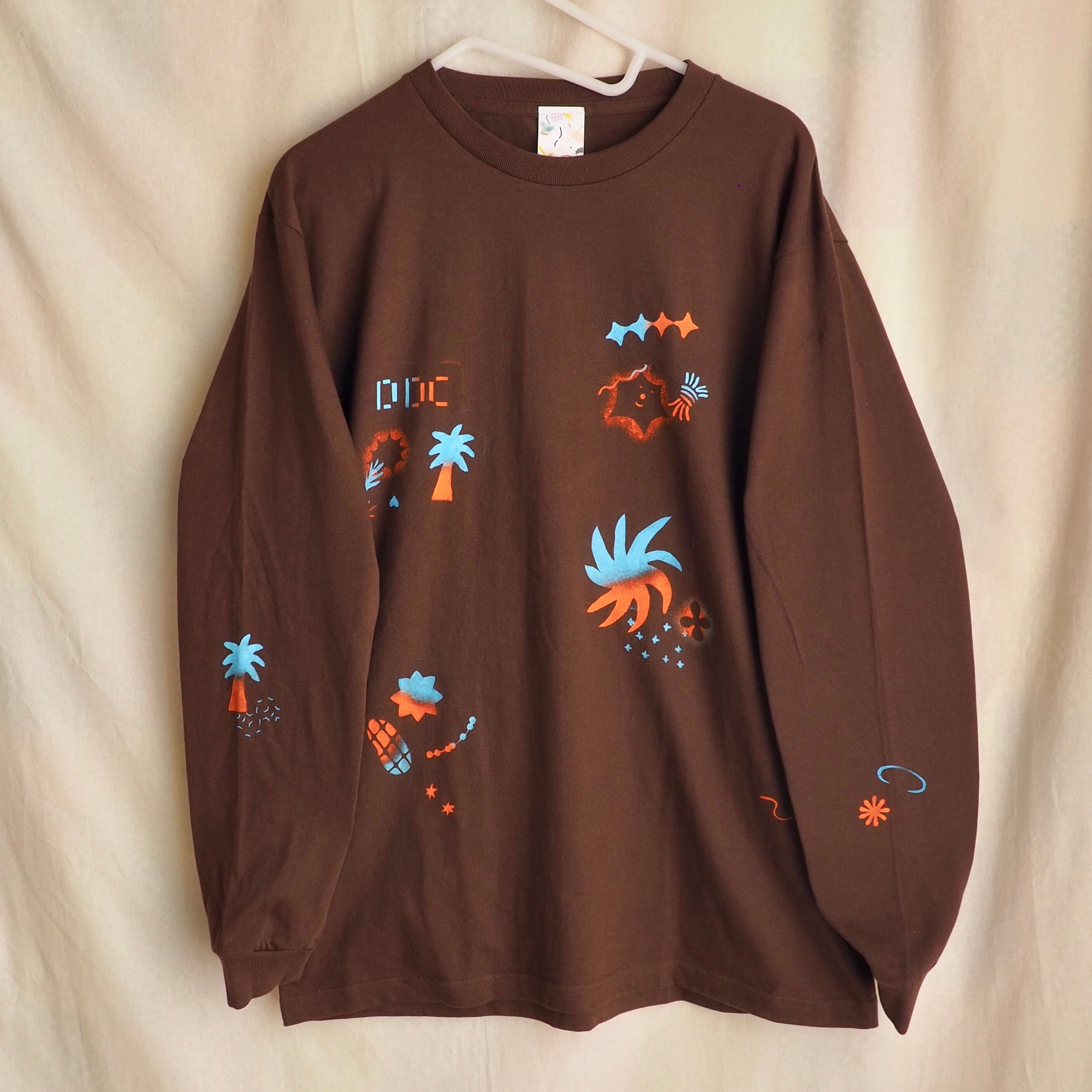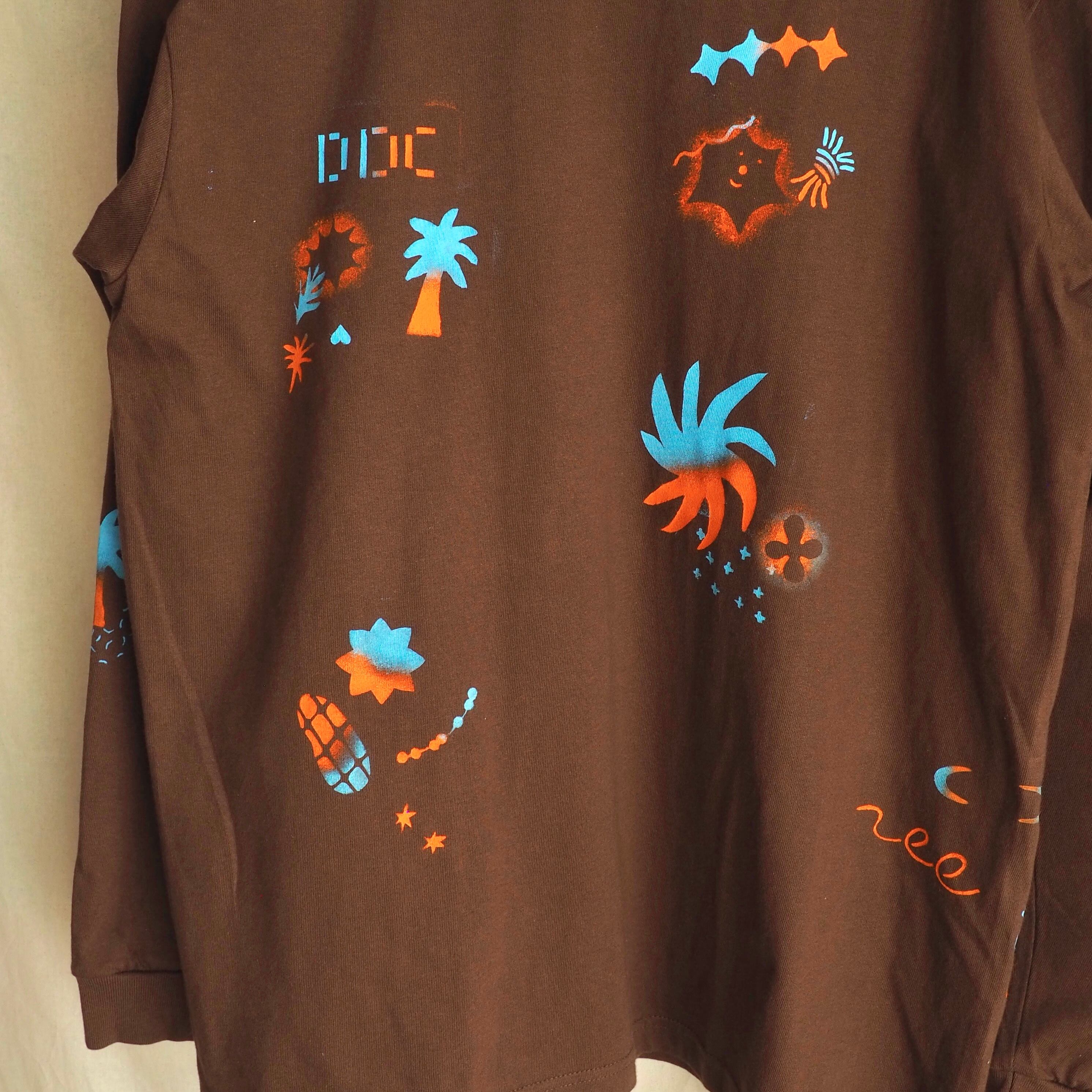 Hand printed stencil T-shirts - 長袖 (L/ブラウン)