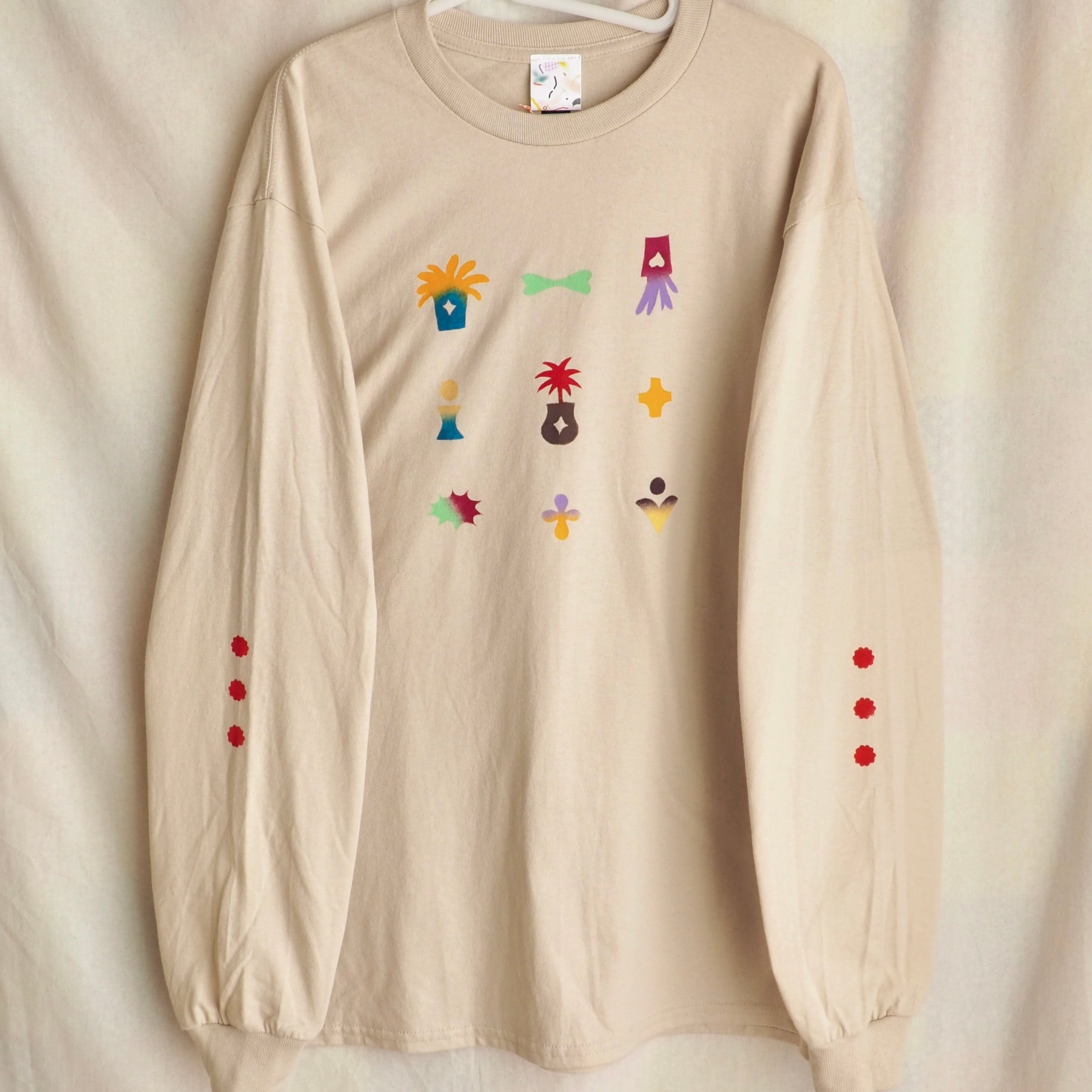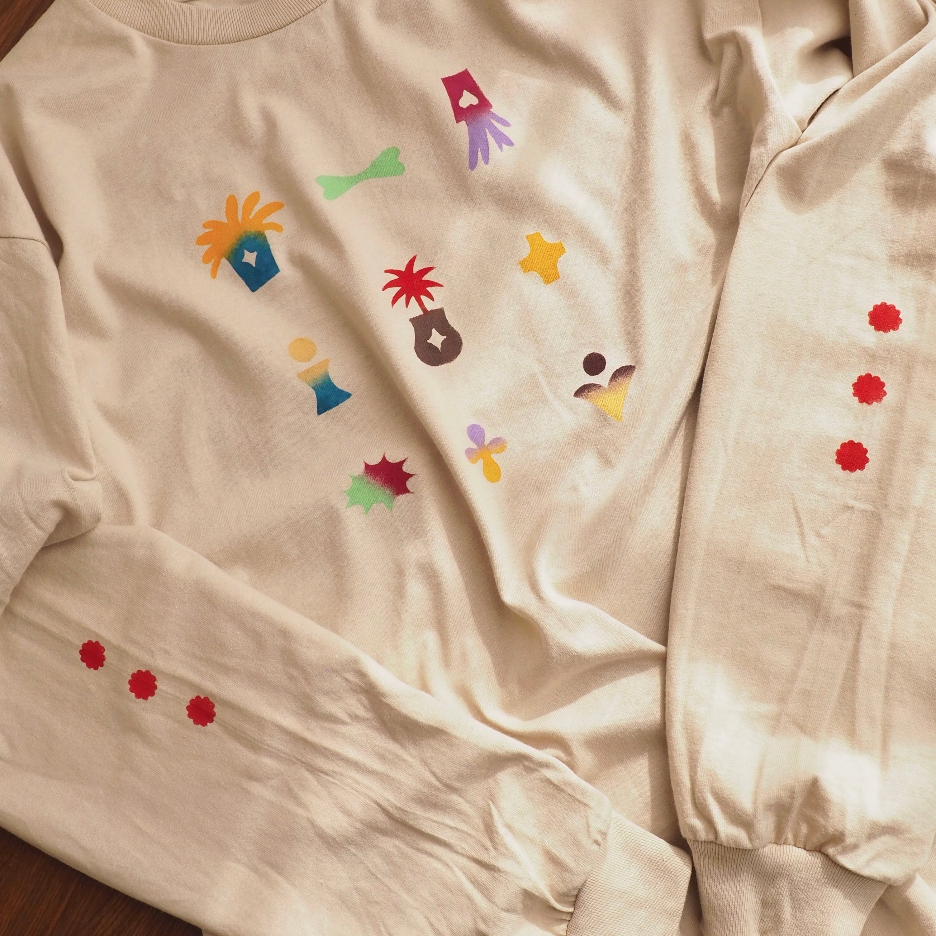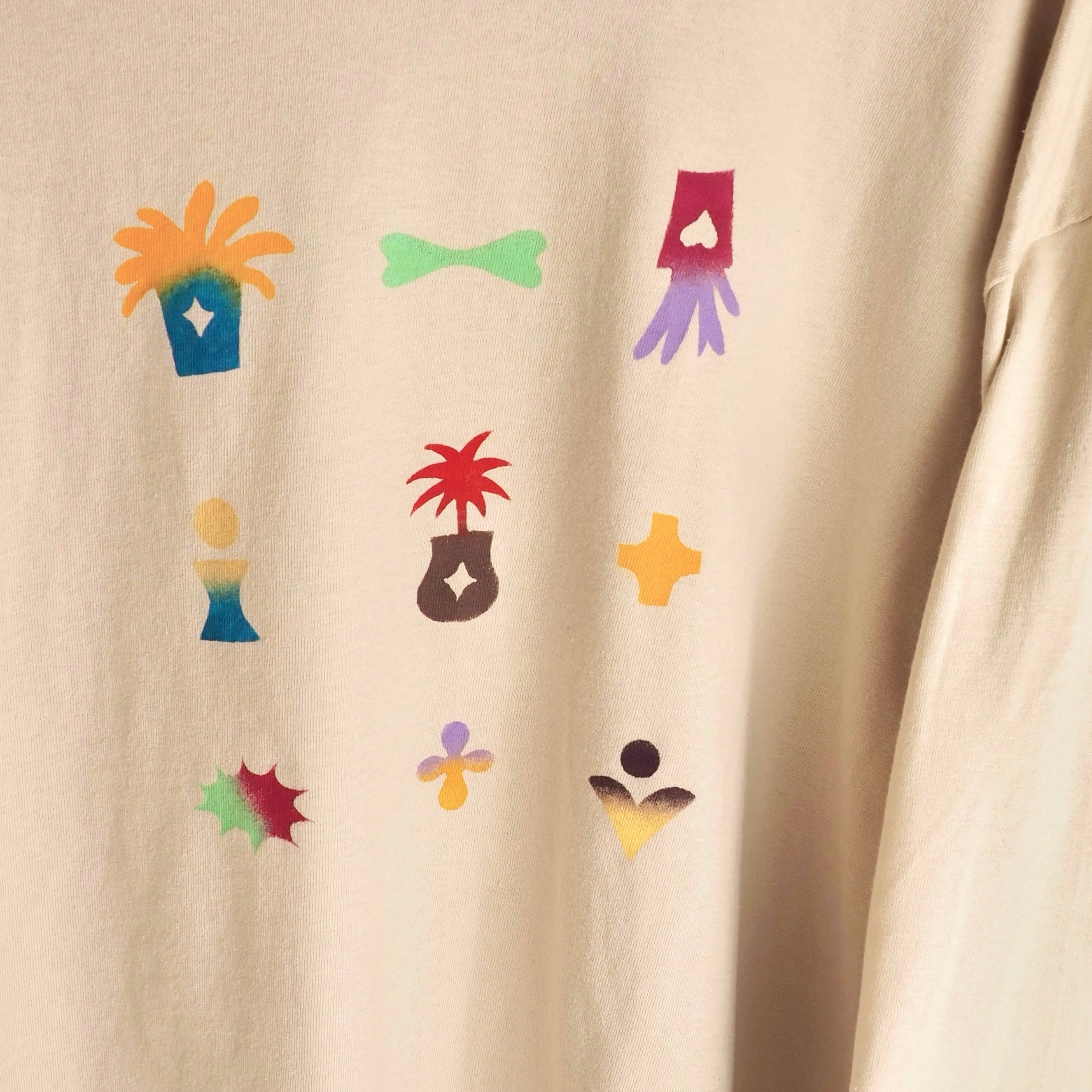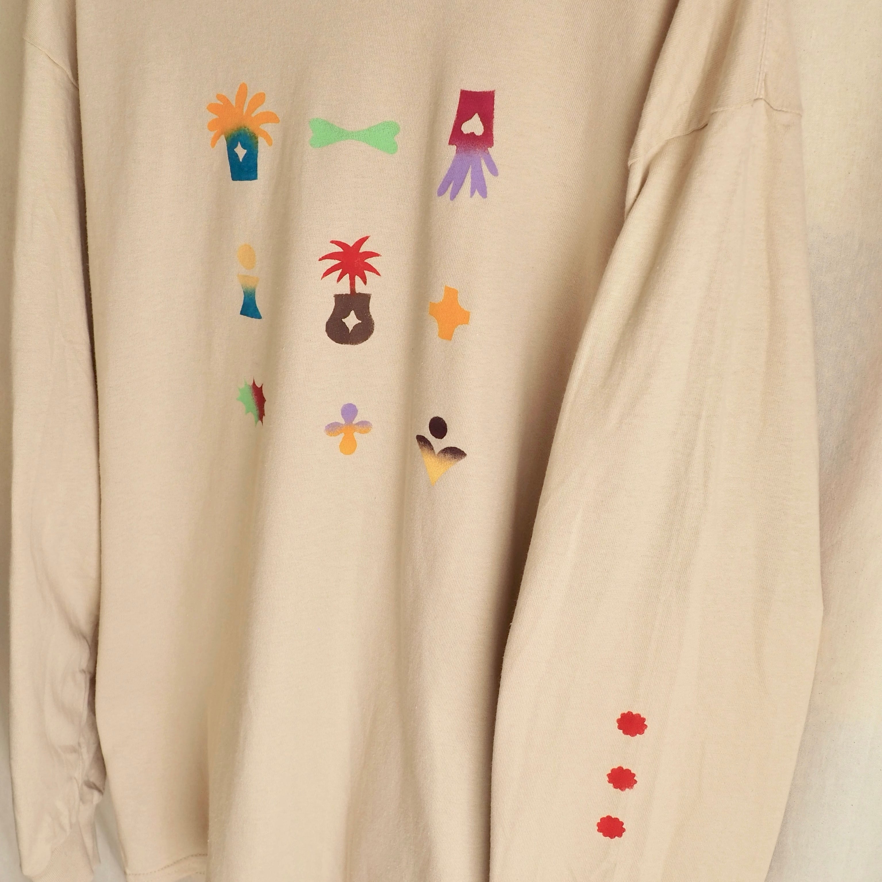 Hand printed stencil T-shirts - 長袖 (L /ベージュ)