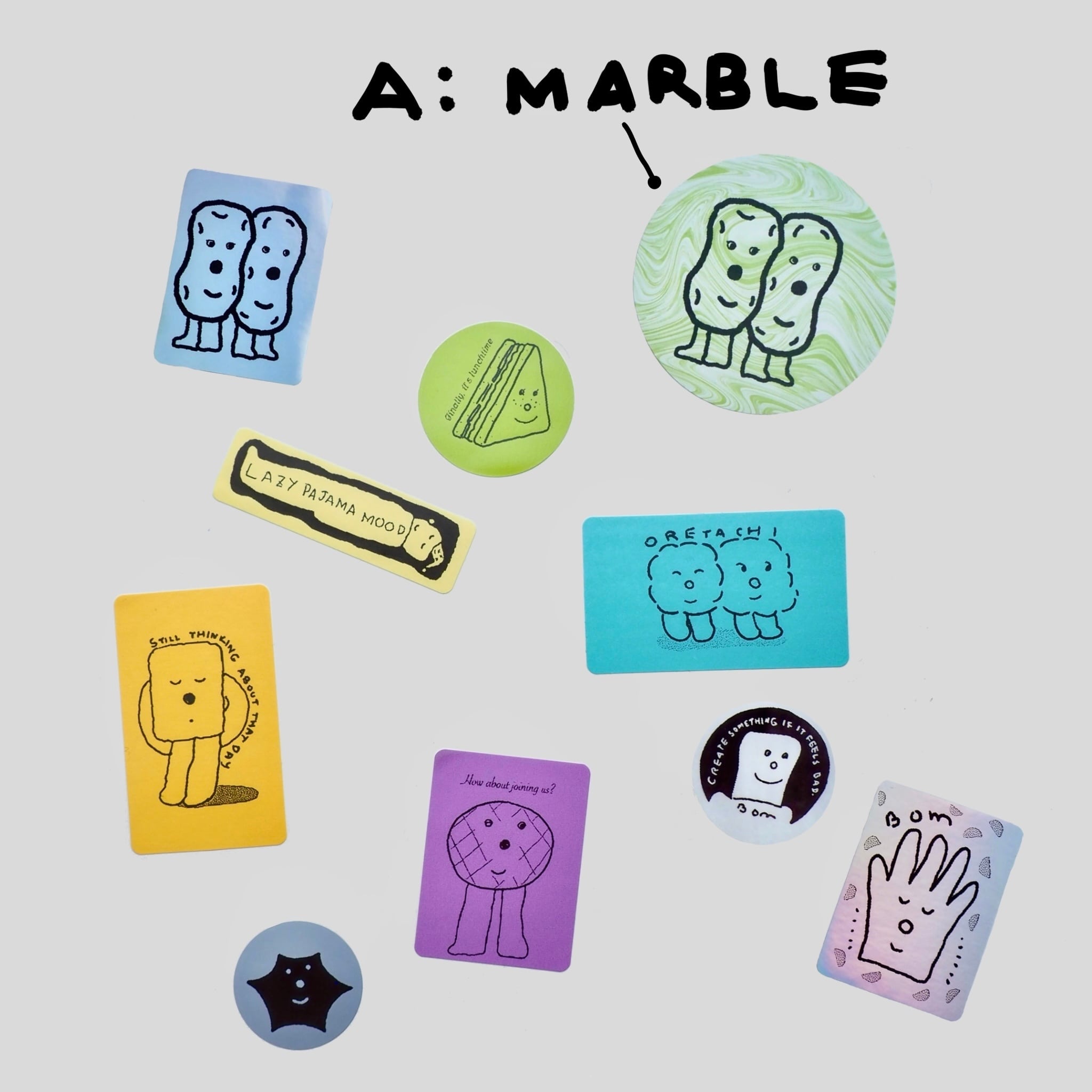 メインとなるグリーンマーブルのステッカー1枚と、ランダムでセレクトした9枚を合わせた、計10枚のセットです。