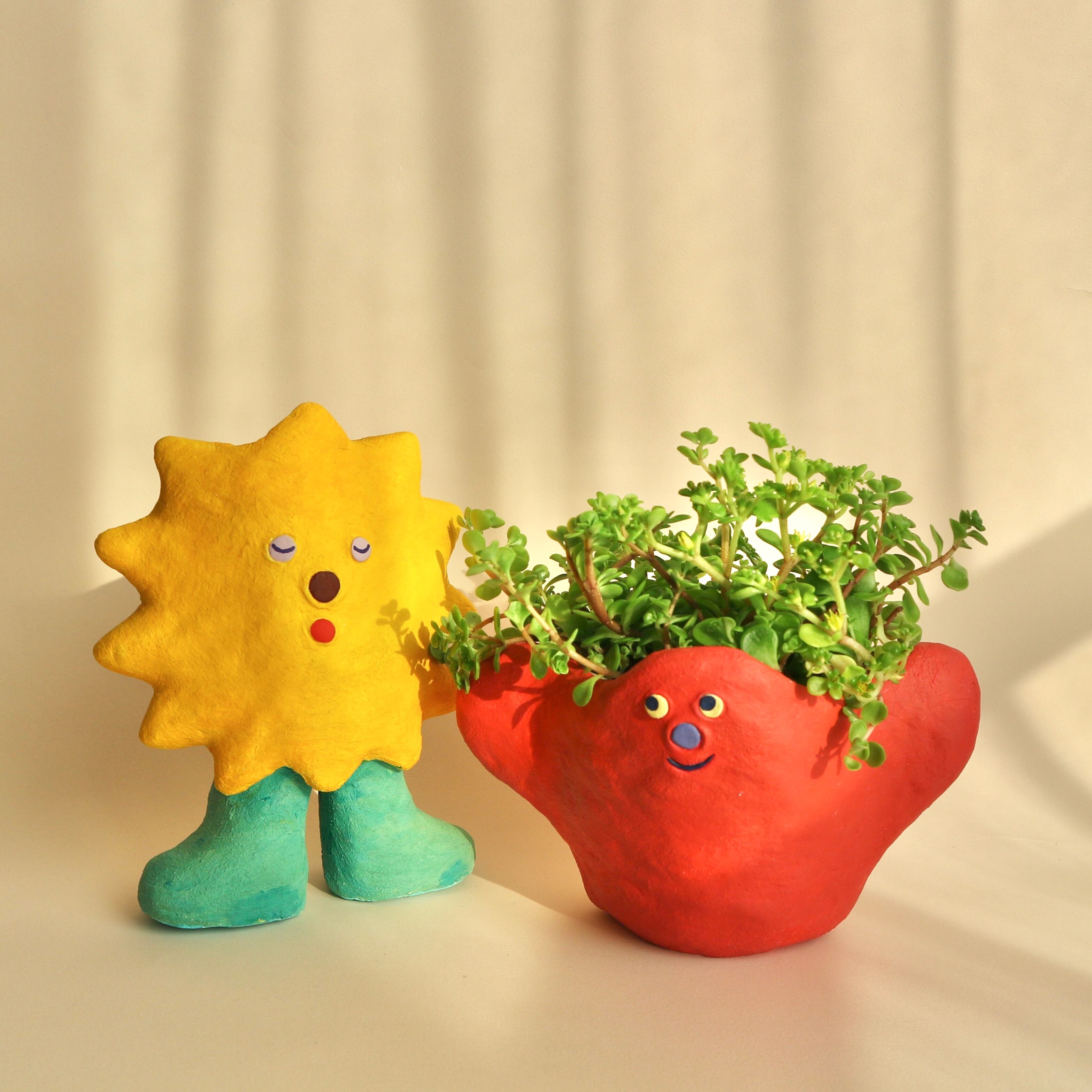 素材: ガラス瓶、粘土、モルタル材、顔料、アクリル絵の具、コーティング材