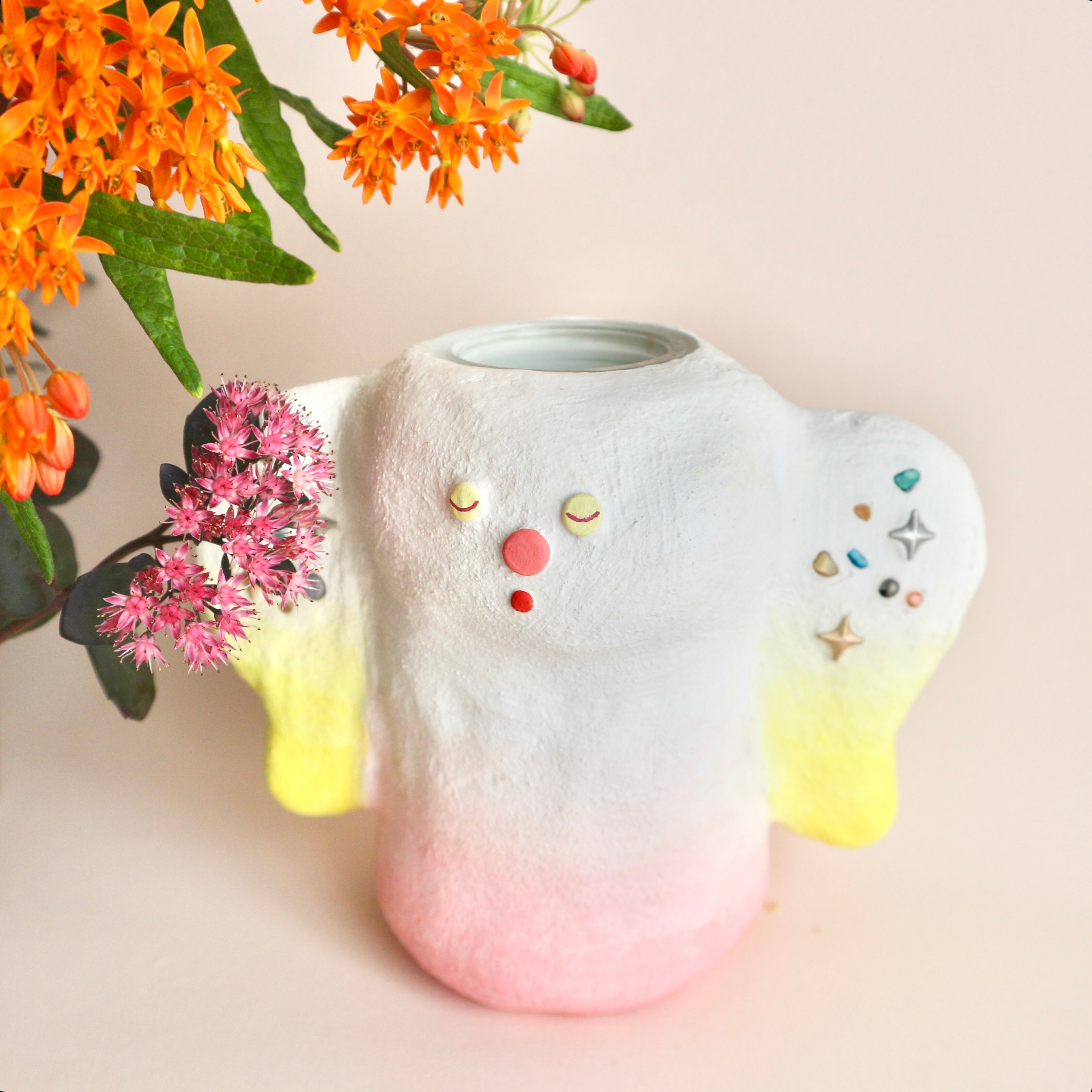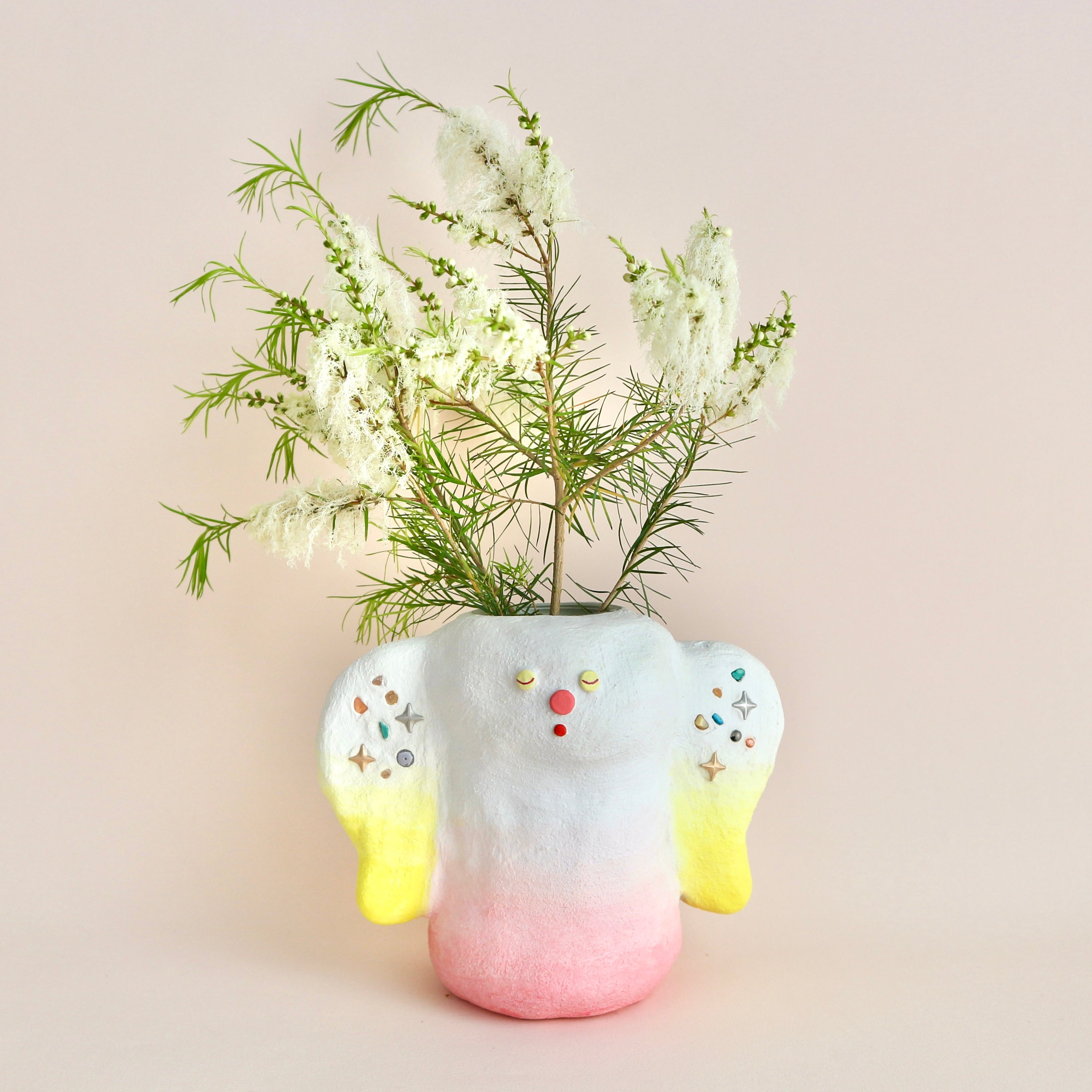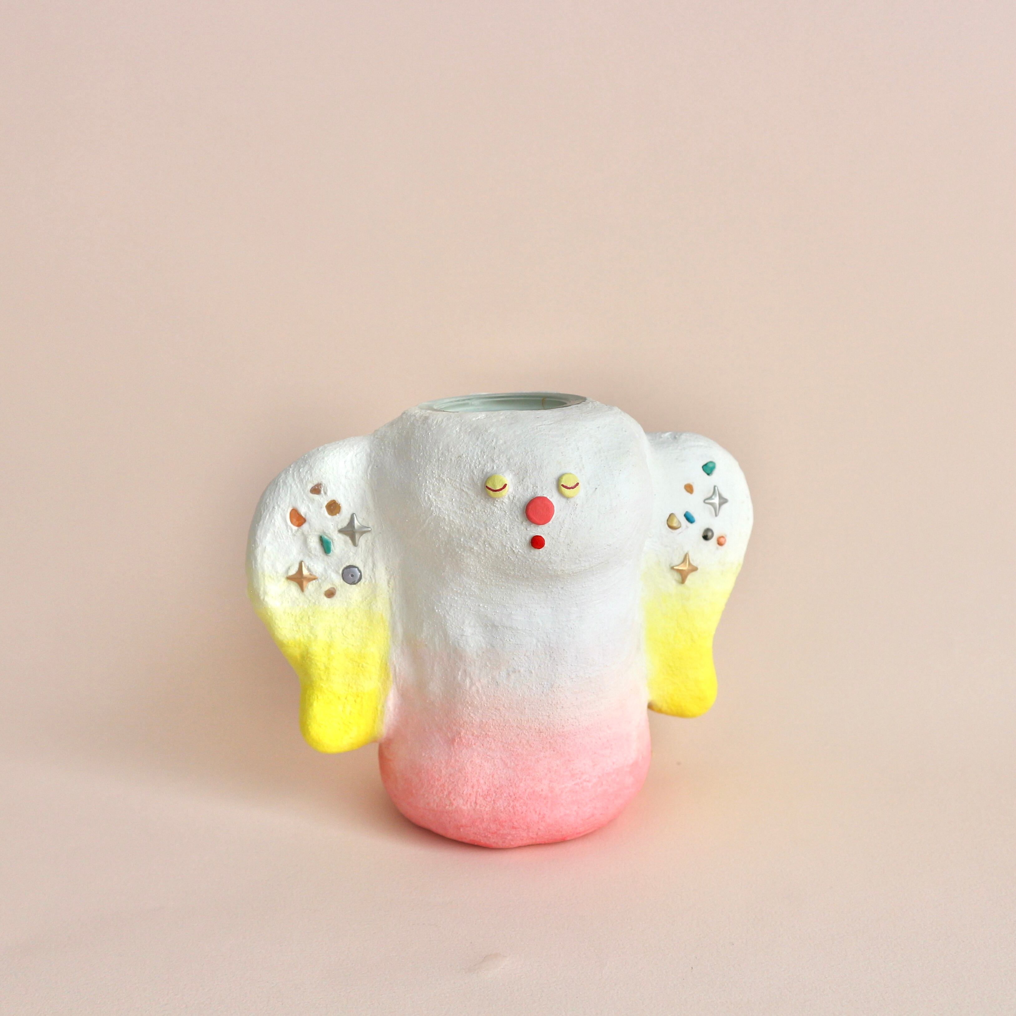 素材: ガラス瓶、粘土、モルタル材、顔料、アクリル絵の具、ビーズ、シェル、コーティング材