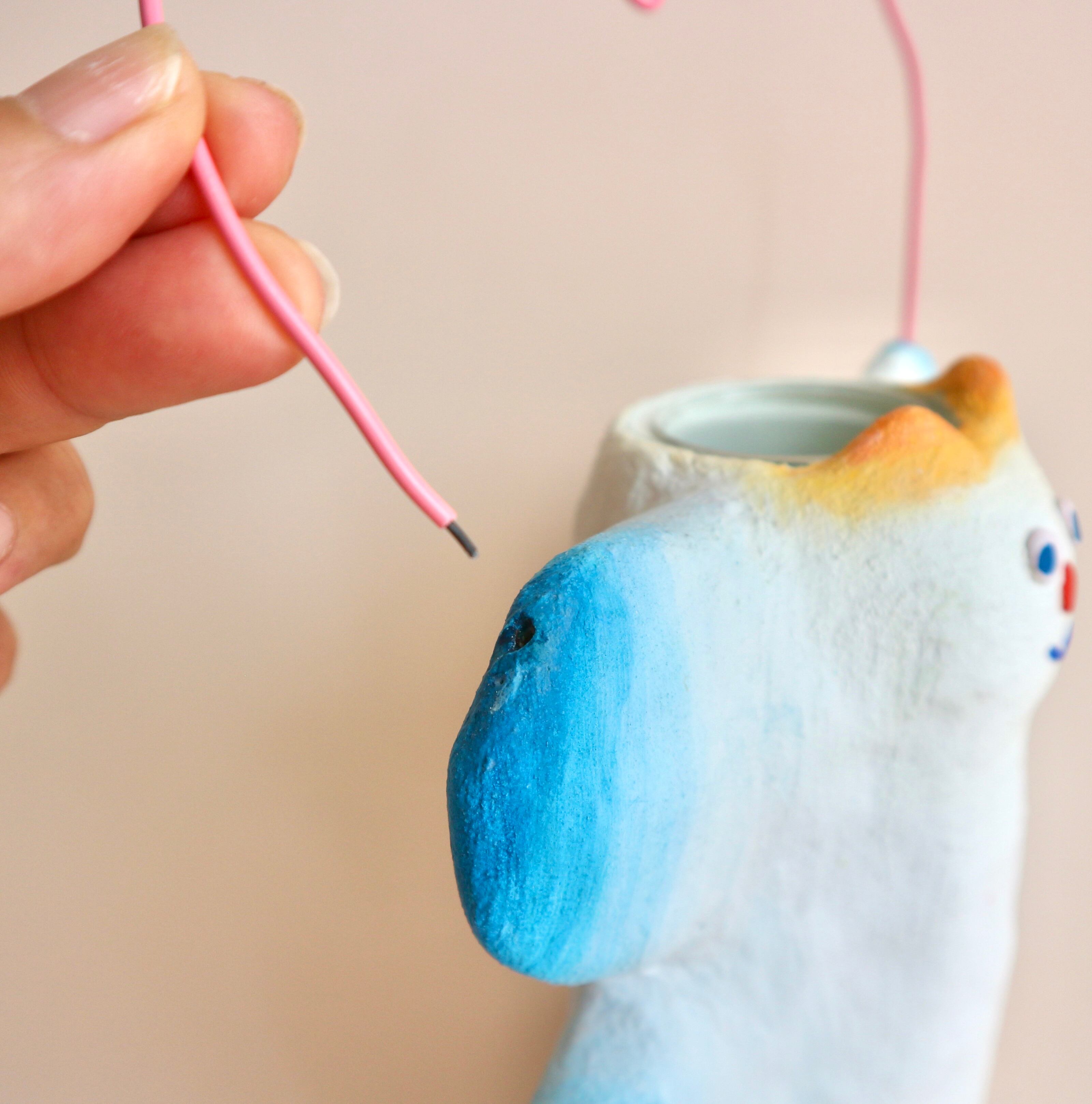 素材: ガラス瓶、モルタル材、顔料、アクリル絵の具、ワイヤー、コーティング材