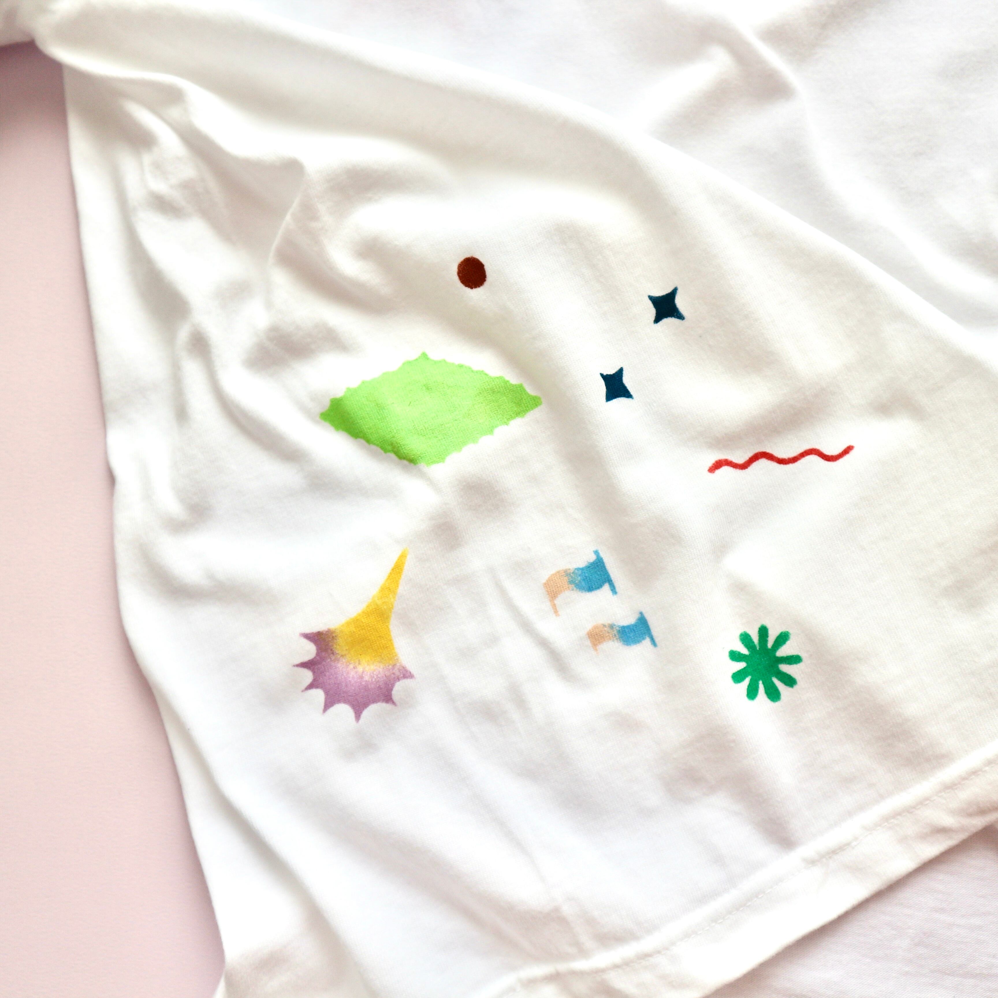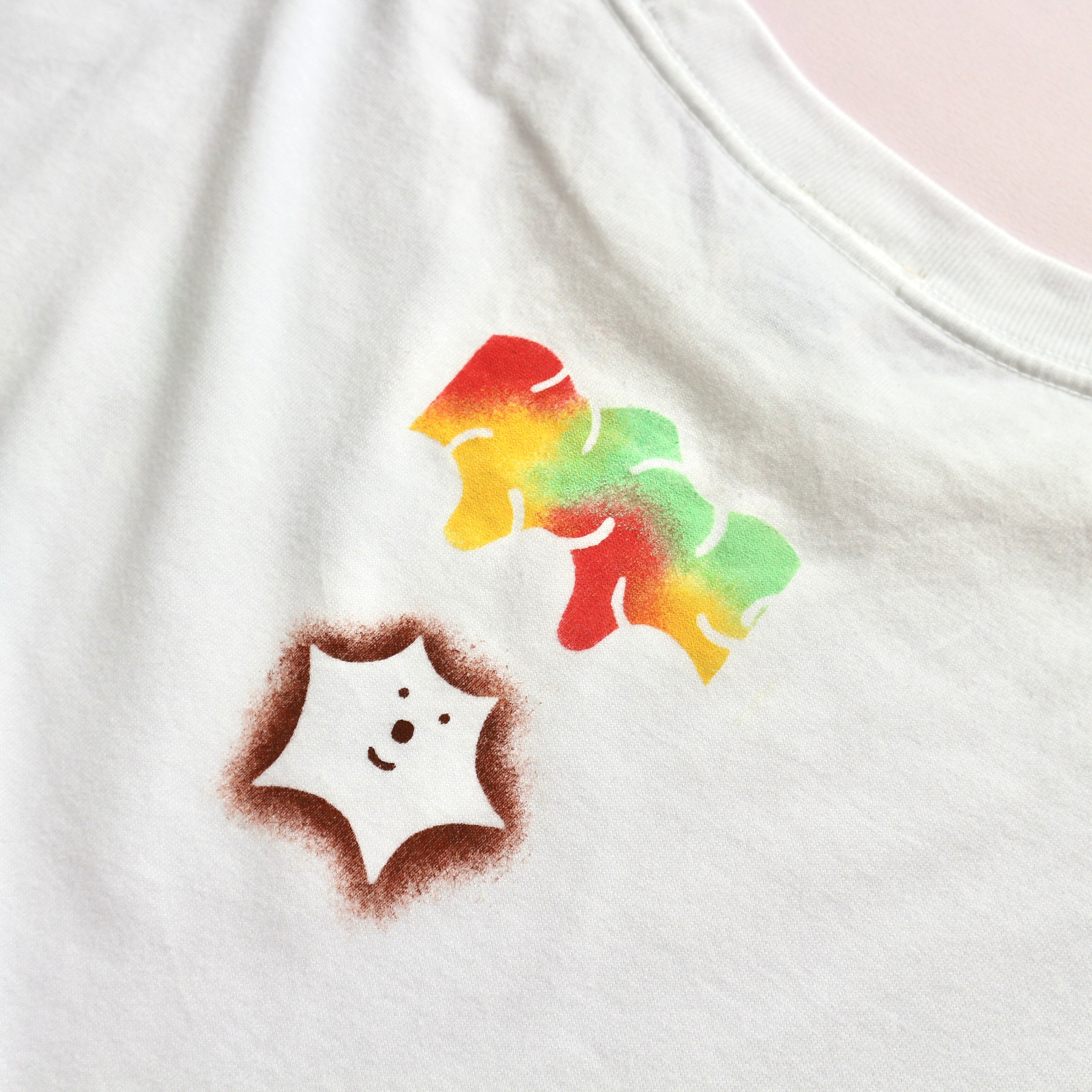 ステンシル特有のグラデーションプリントや、モチーフごとに変えた細かいカラーリングが特徴です。