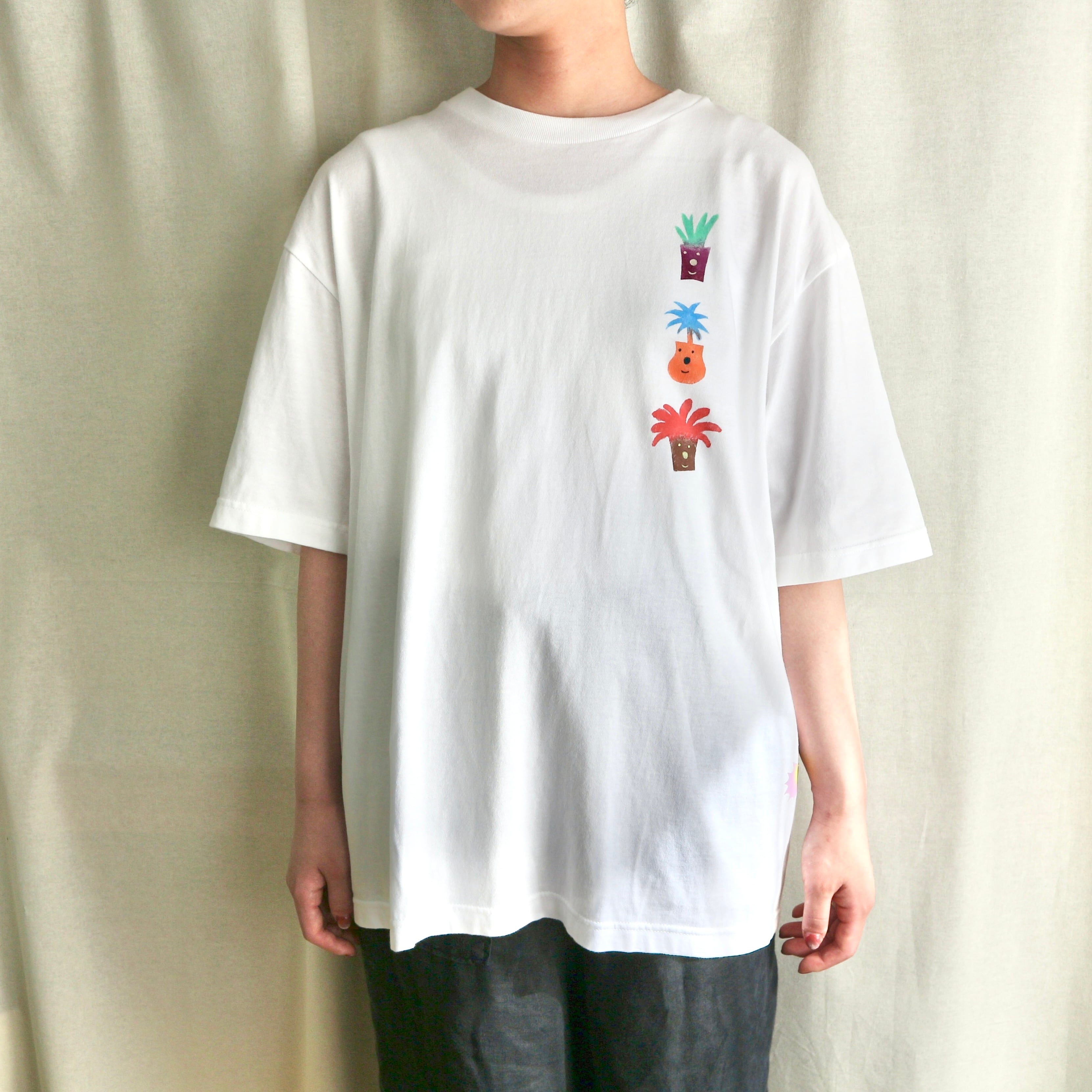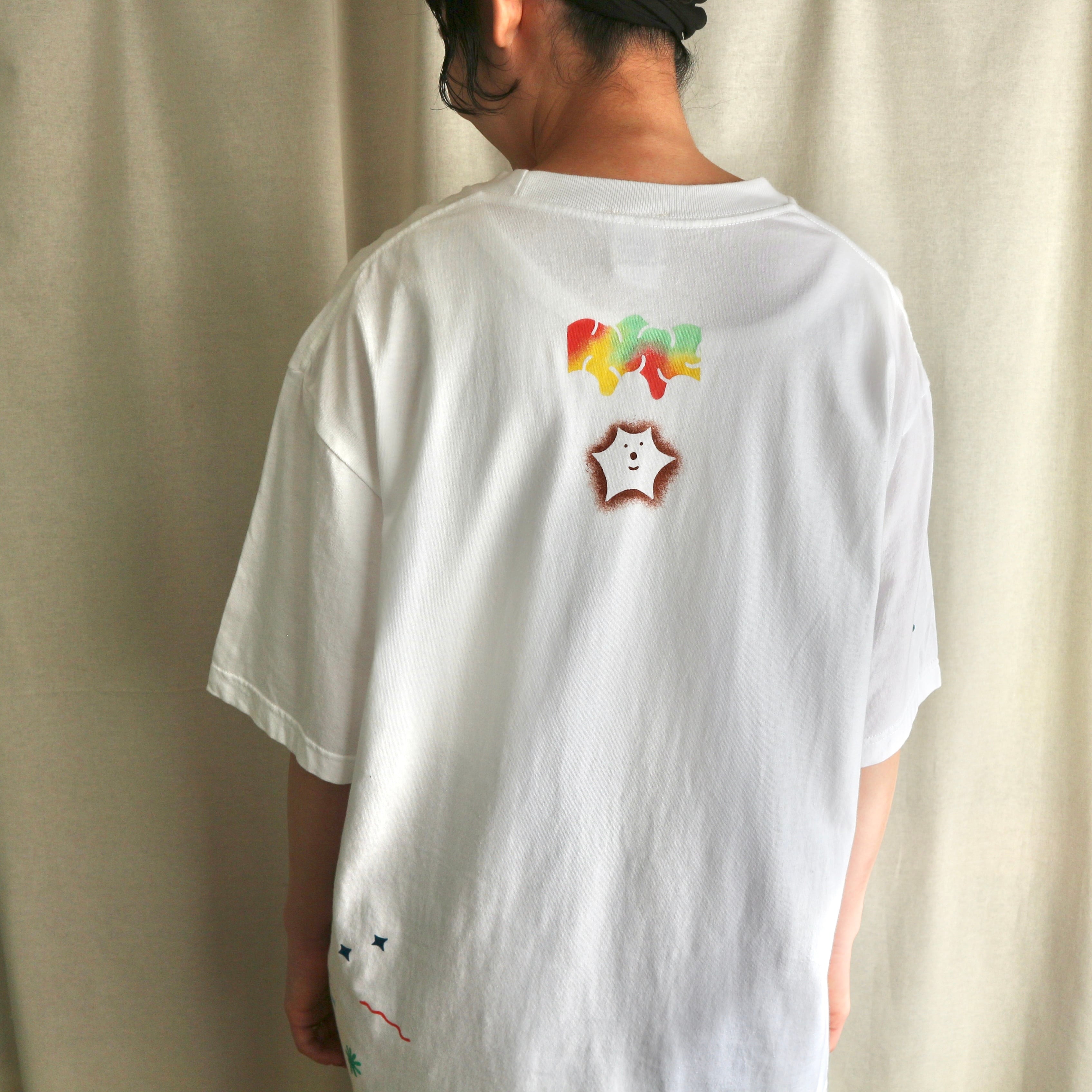 Hand printed stencil T-shirts - 半袖 (M/ホワイト)
