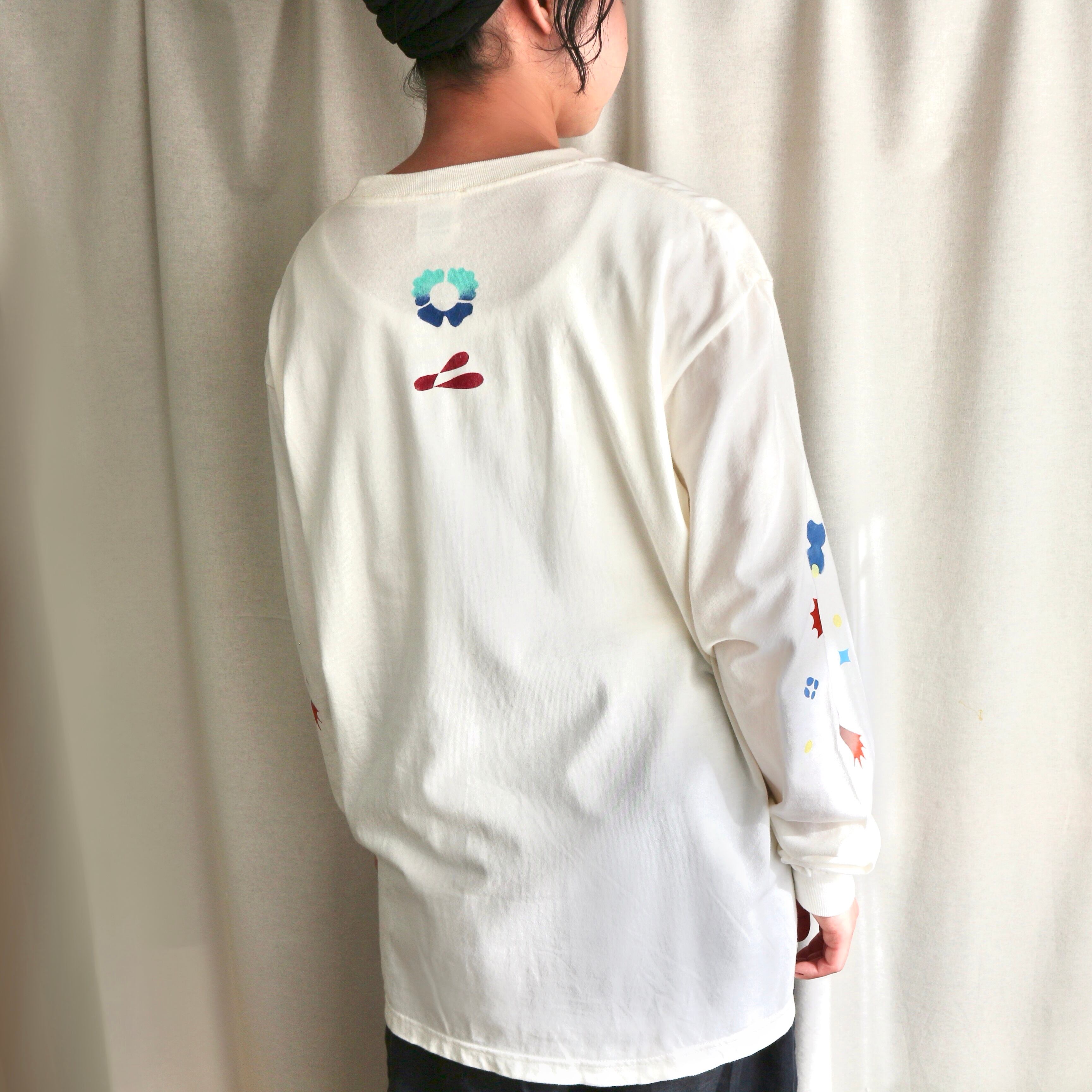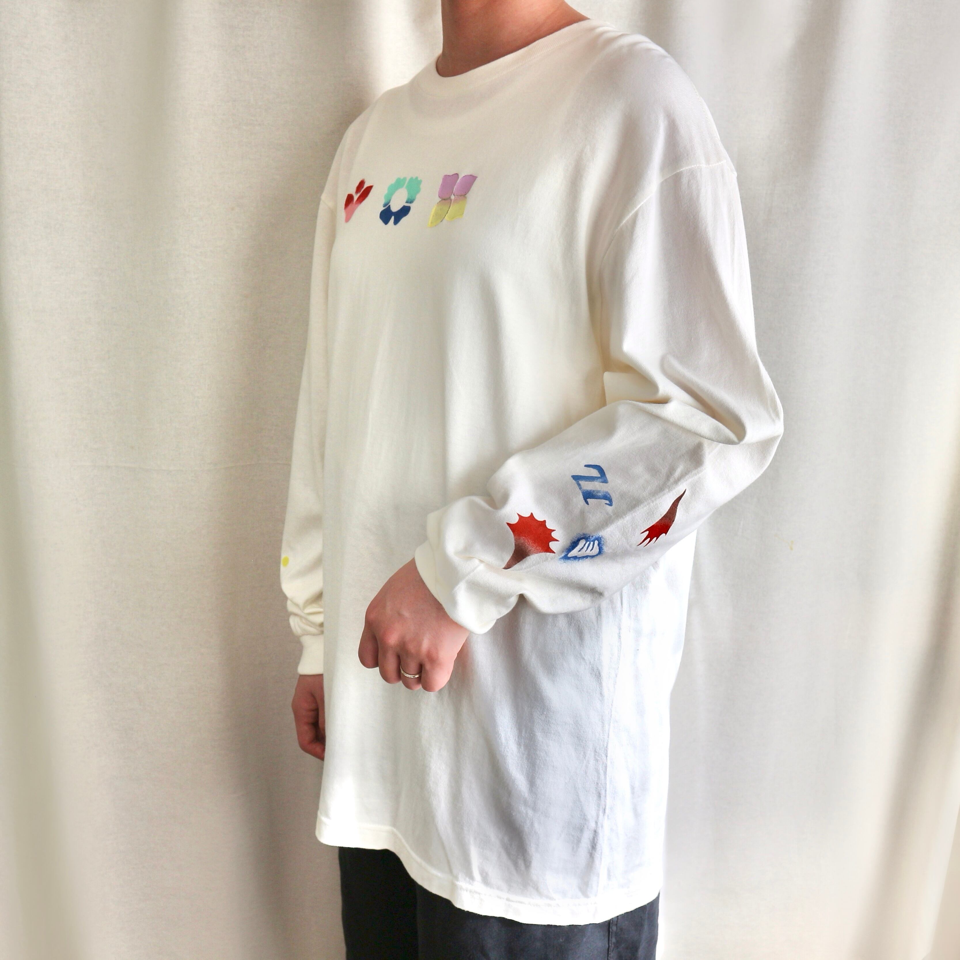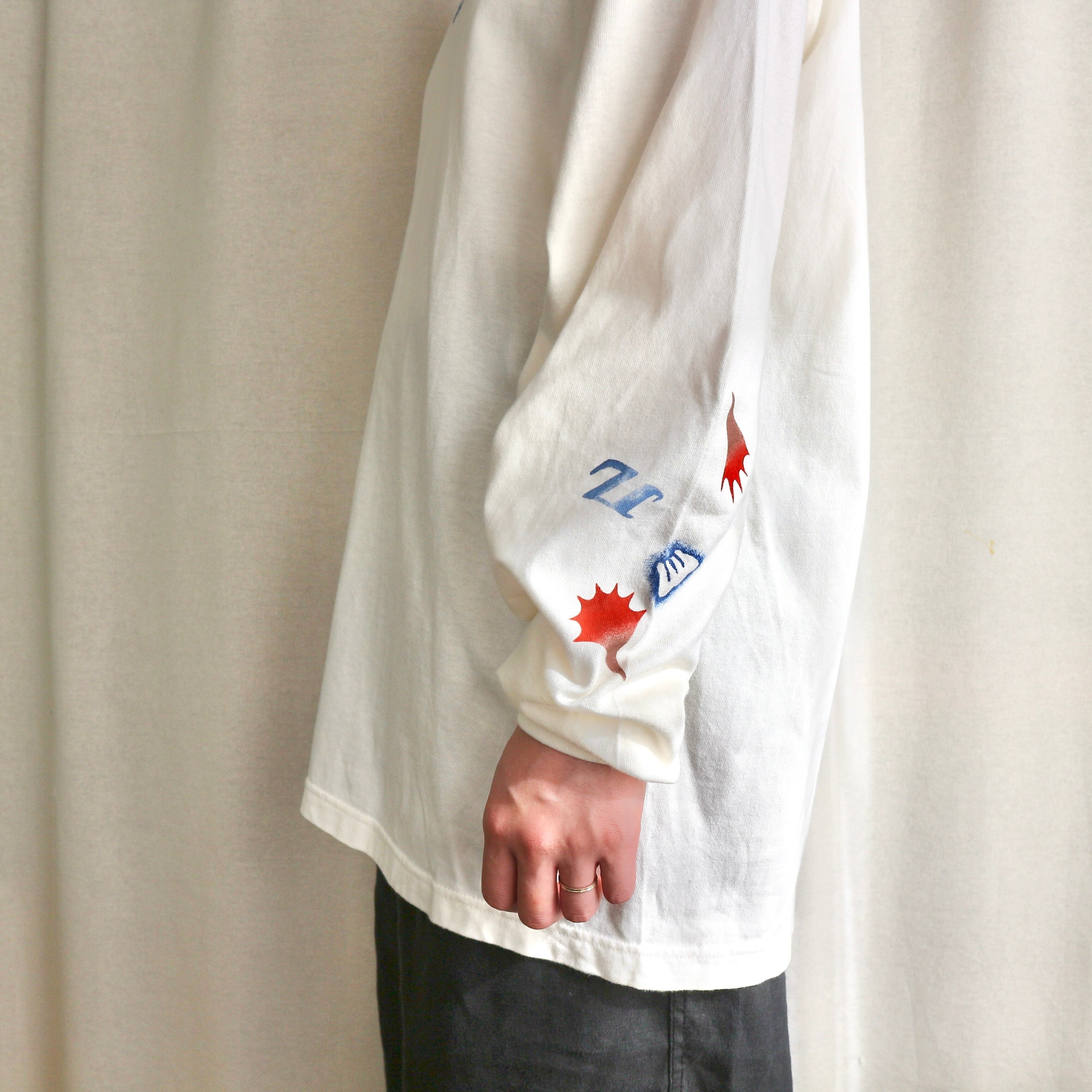 Hand printed stencil T-shirts - 長袖 (L/アイボリー)