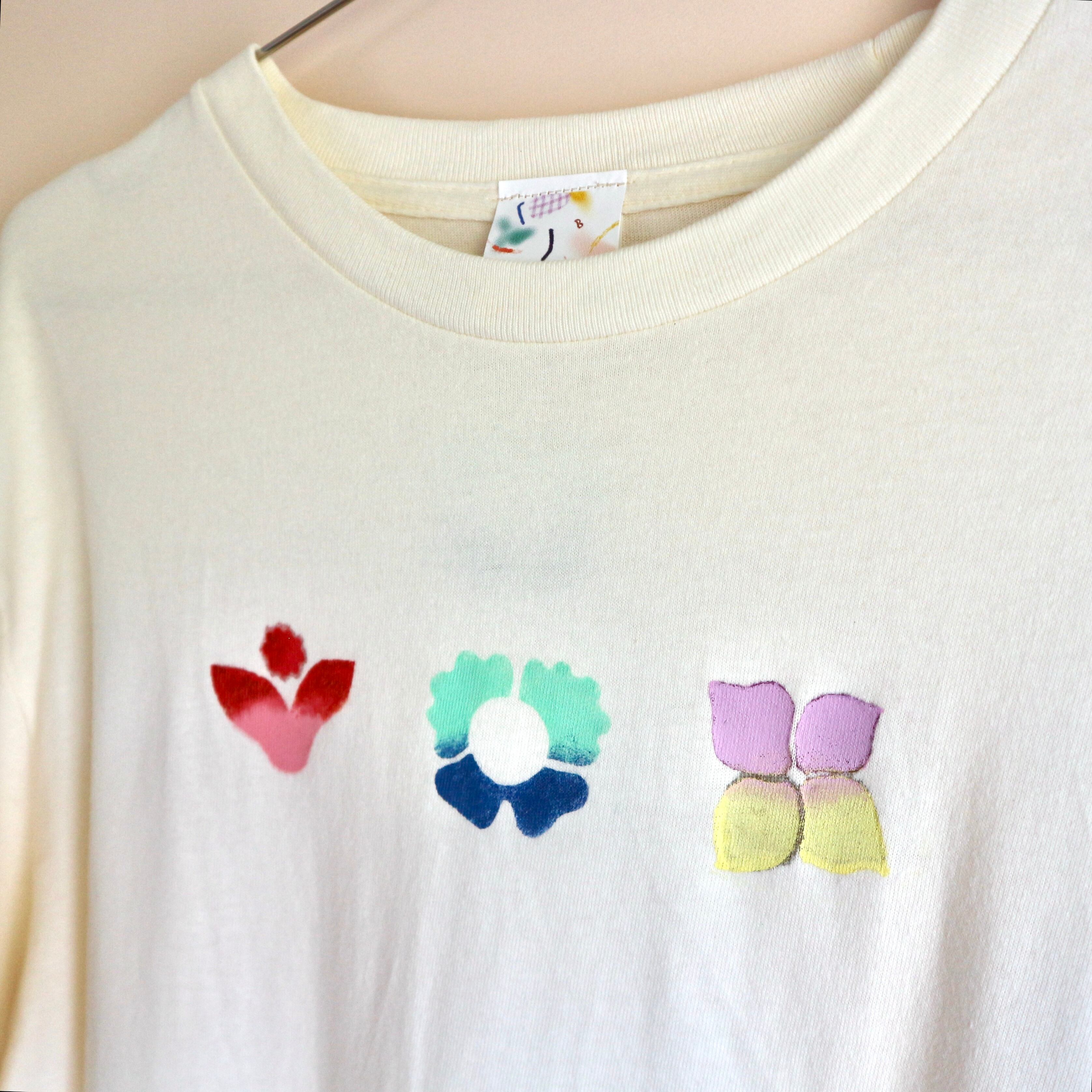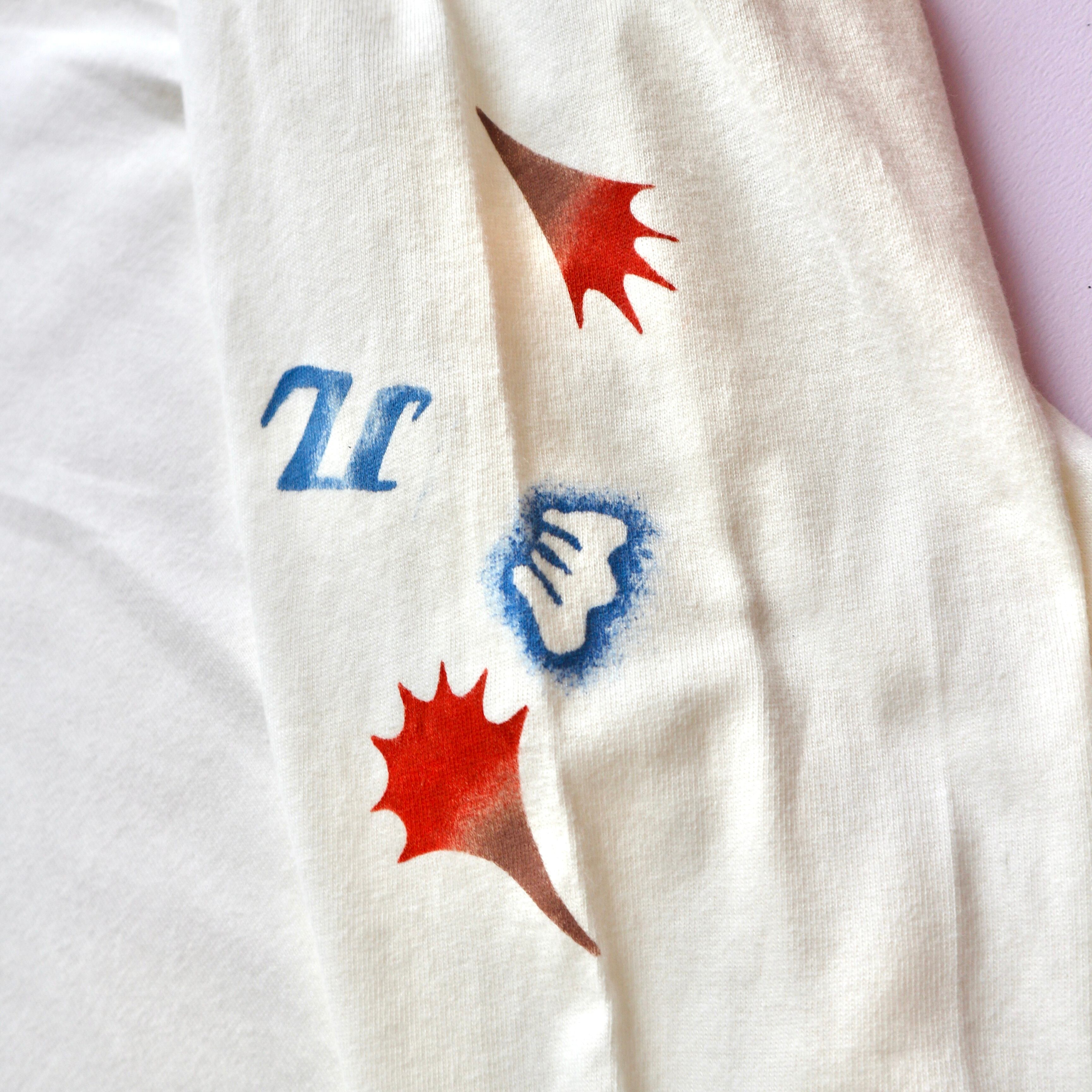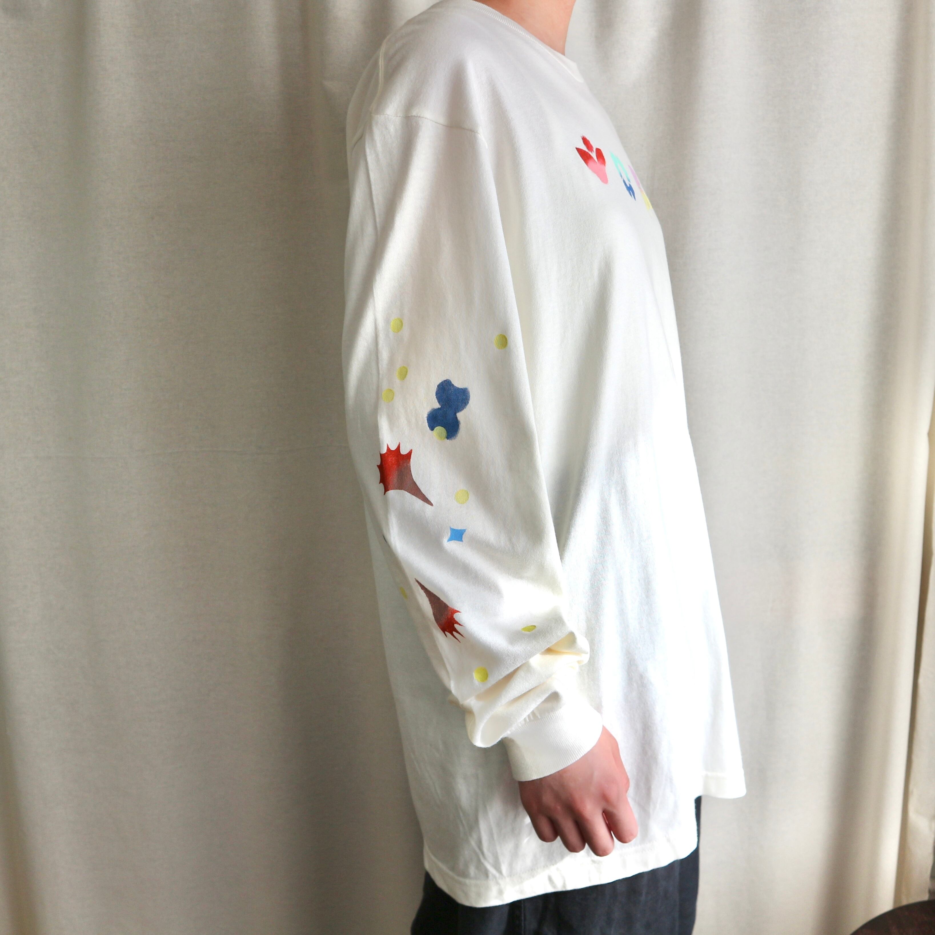 Hand printed stencil T-shirts - 長袖 (L/アイボリー)