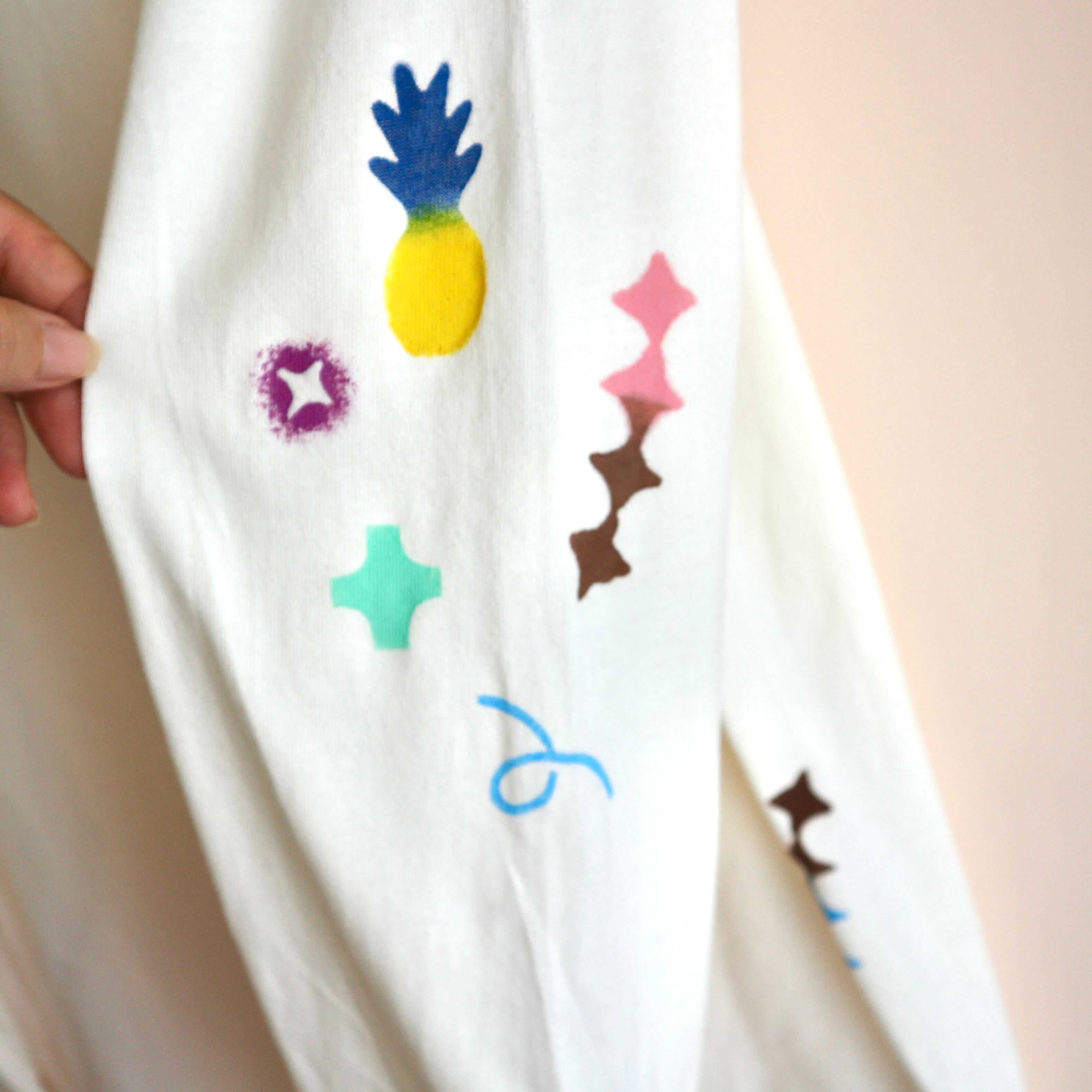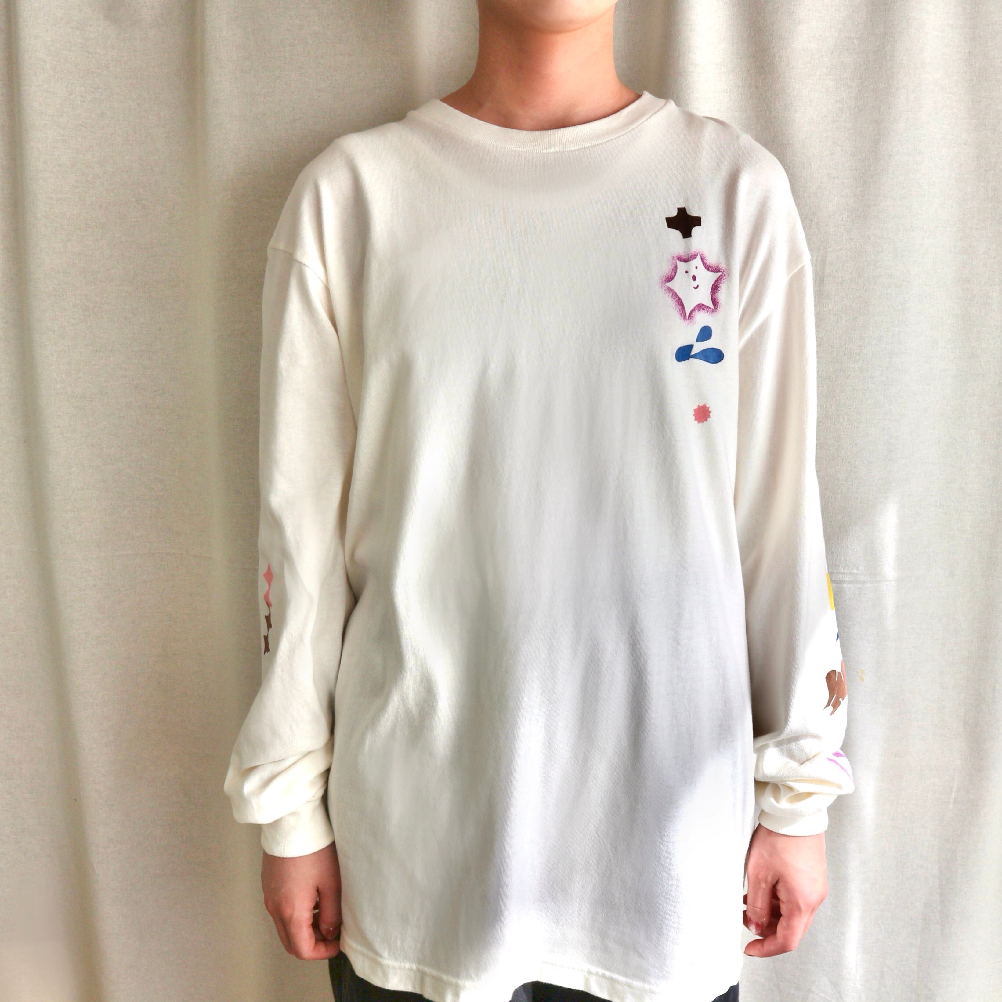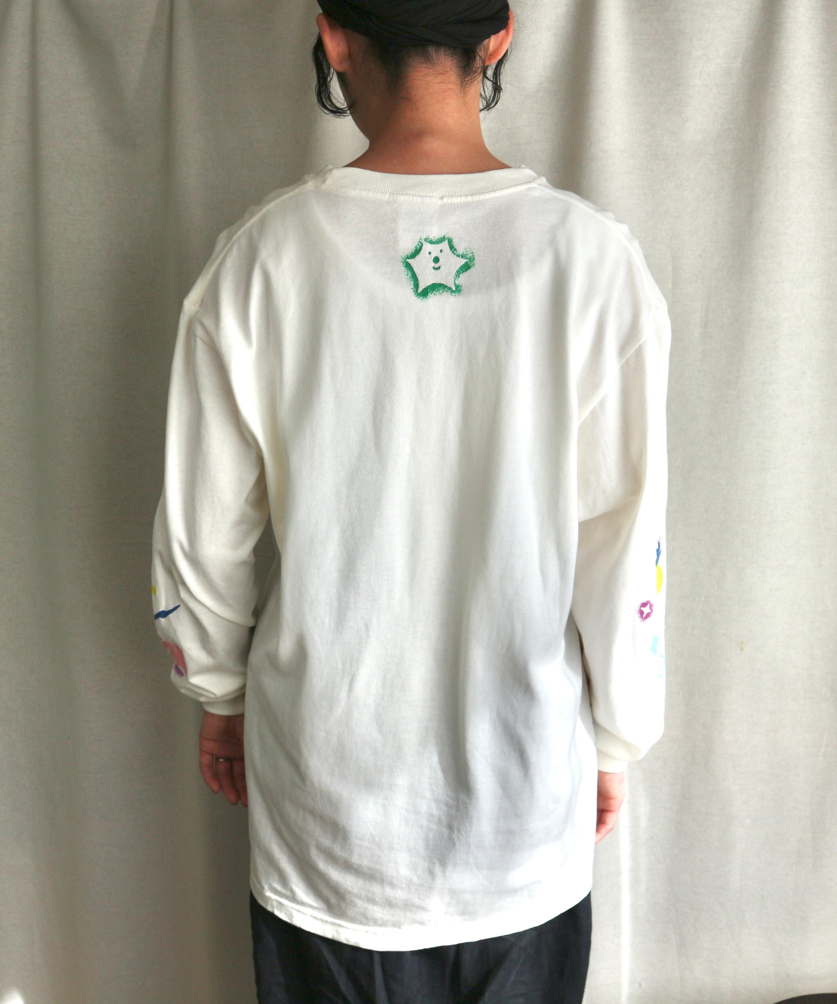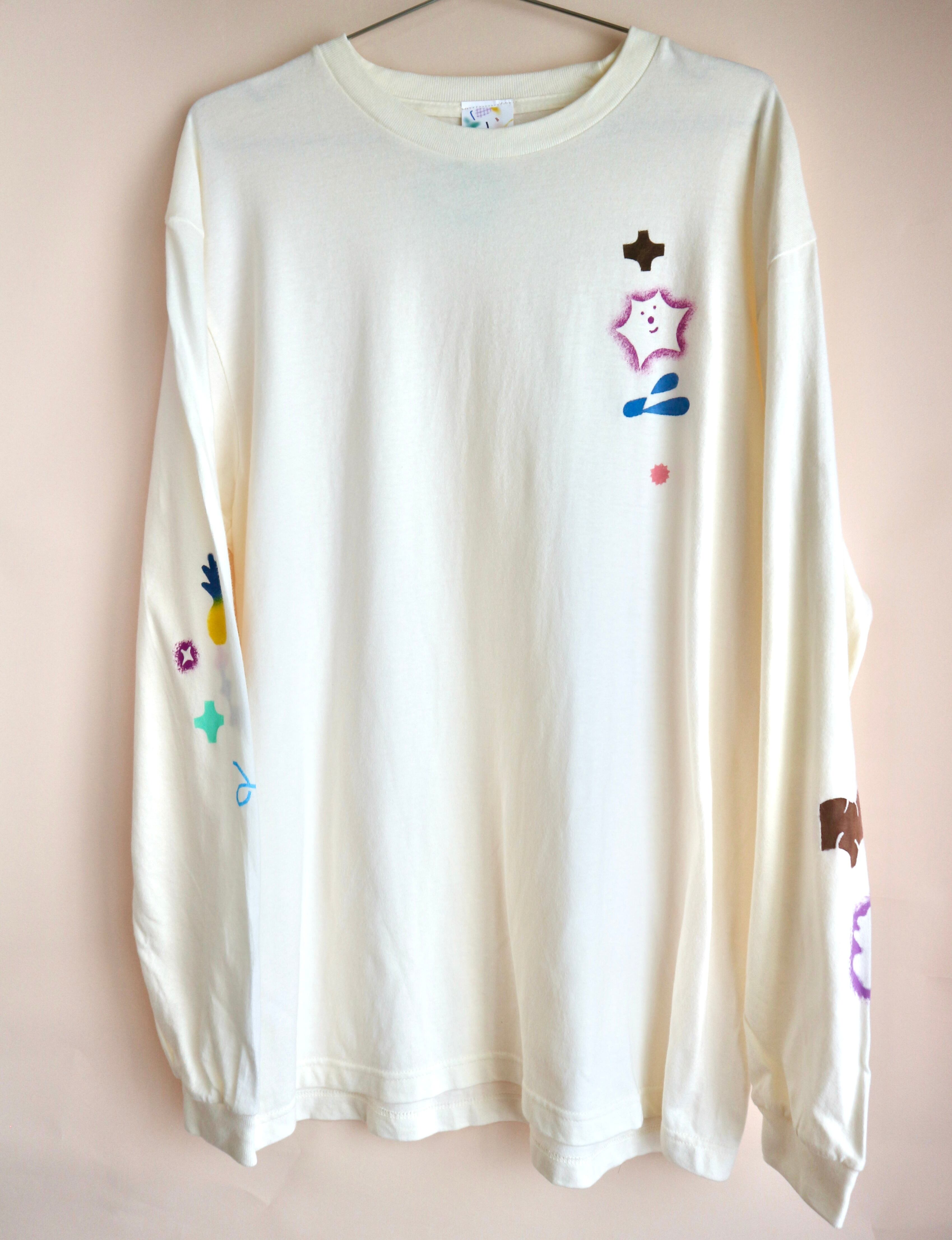 Hand printed stencil T-shirts - 長袖 (L/アイボリー)