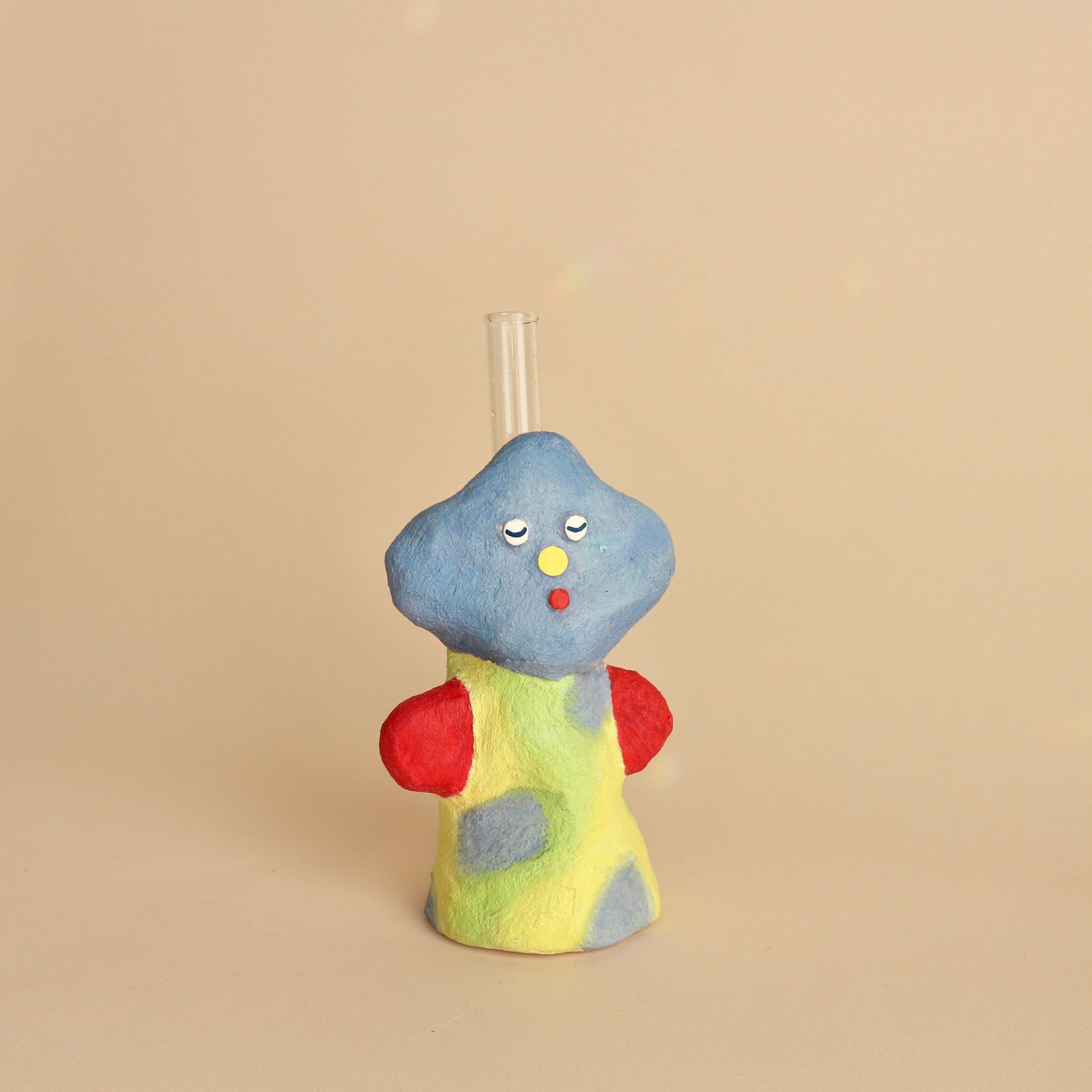 Clay, grout, pigment, acrylic paint, beads and varnish coating