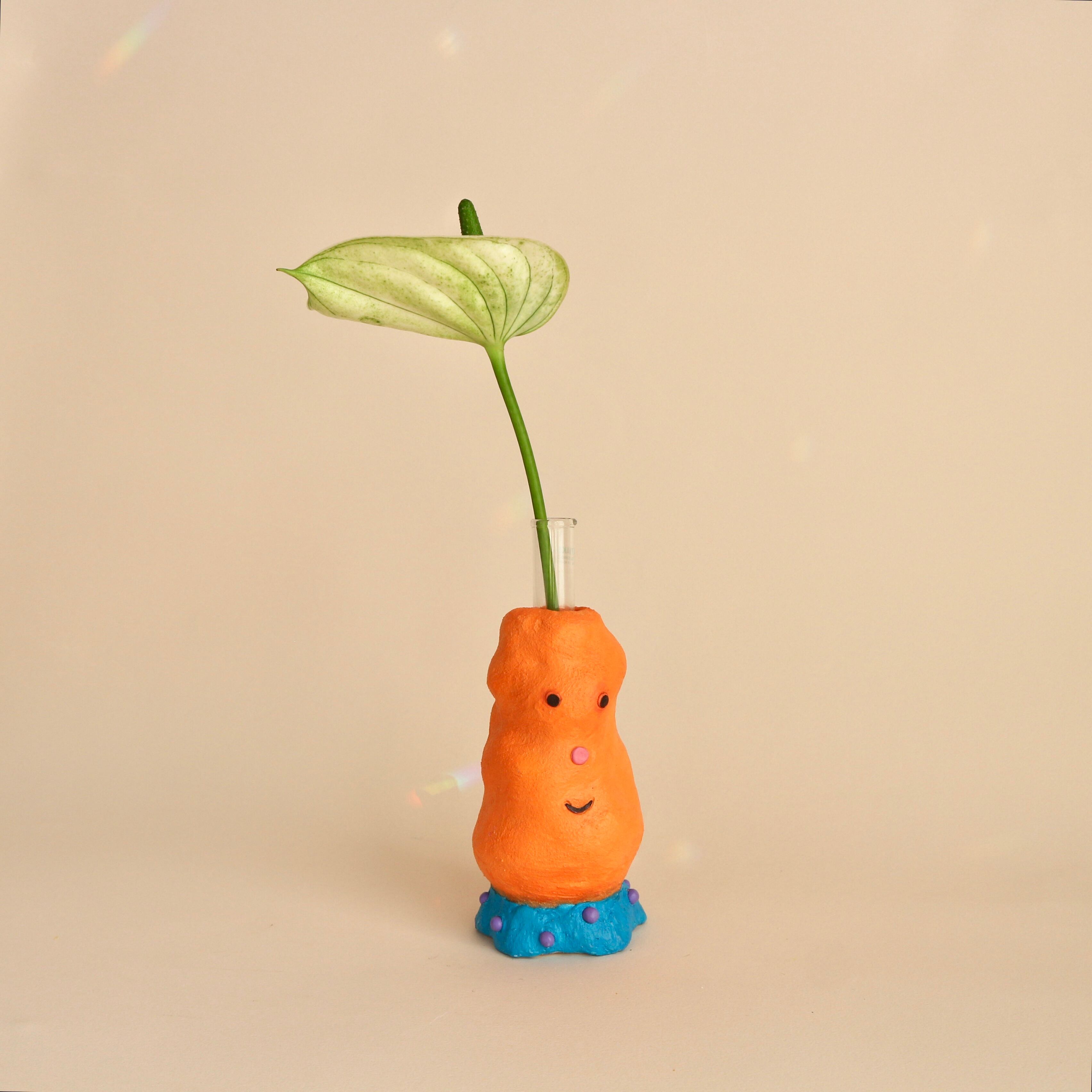 モルタルのザラついた質感が特徴的な、試験管タイプの一輪挿し。